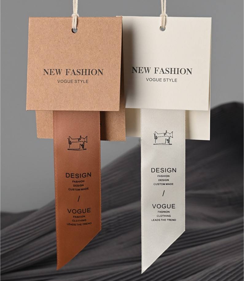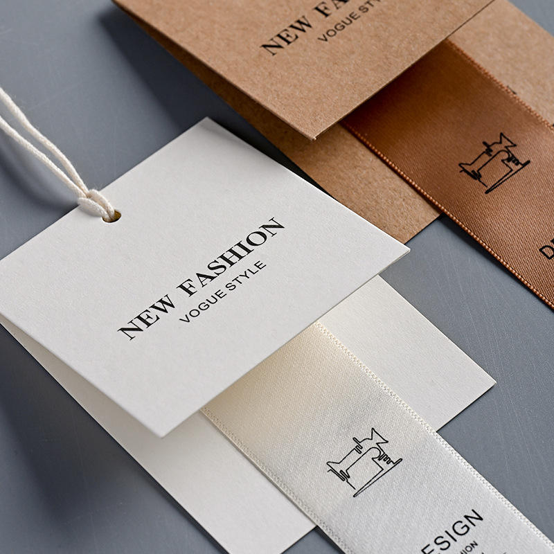 Moda nuevas etiquetas colgantes cinta doblada papel artesanal diseño ropa Stock etiquetas con logotipo etiquetas colgantes personalizadas