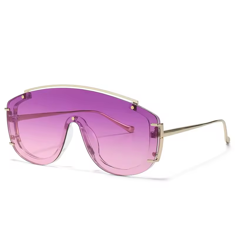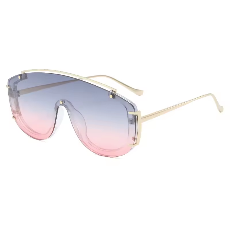 Gafas de Sol de Moda con Lentes de PC de una Sola Pieza, Degradado, Unisex, Metálicas, Modernas, de Gran Tamaño