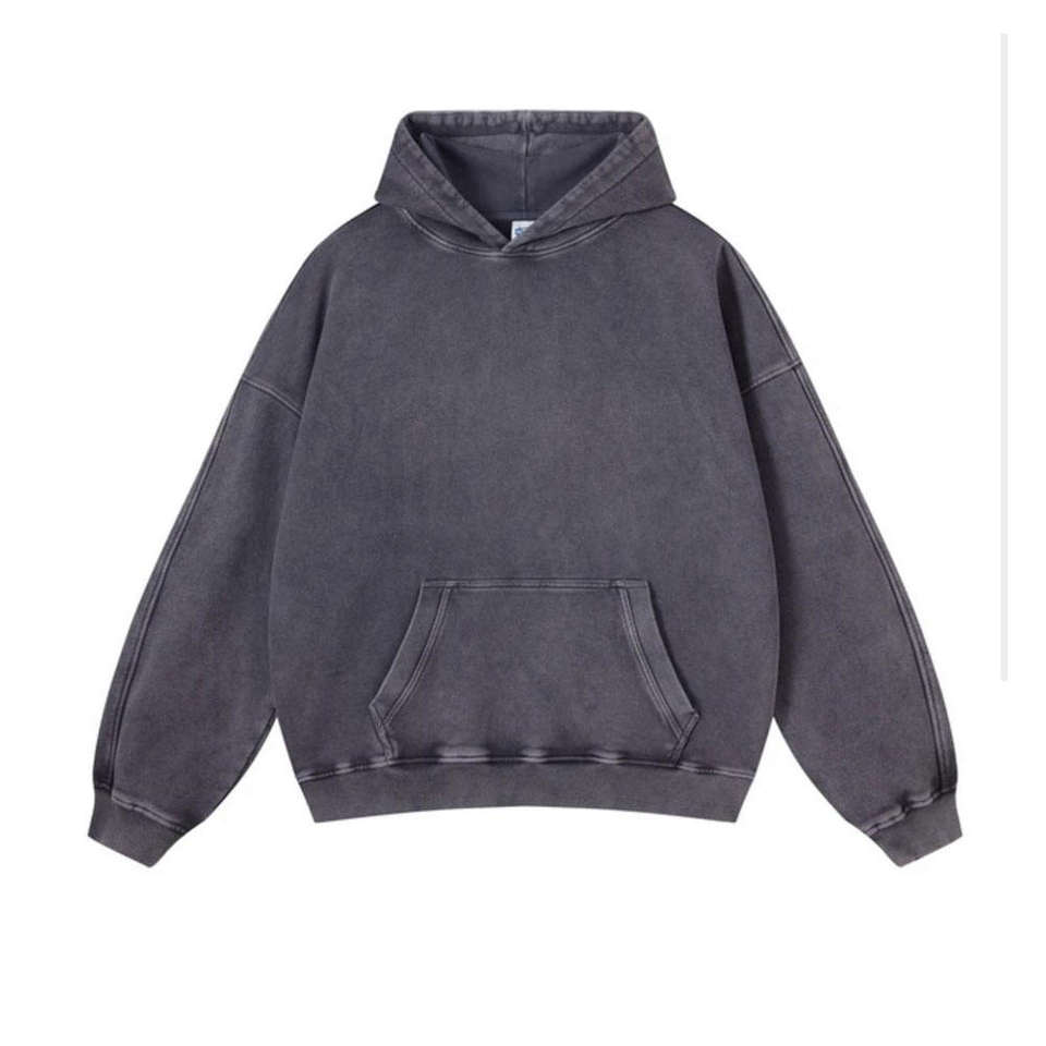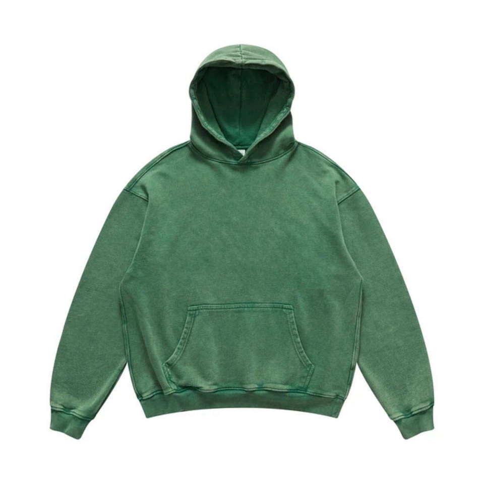 Sudadera con Capucha Personalizada de Estilo Urbano, Invierno, Efecto Desgastado por el Sol, 100% Algodón Orgánico, Felpa Gruesa, Corte Regular, Lavado Ácido