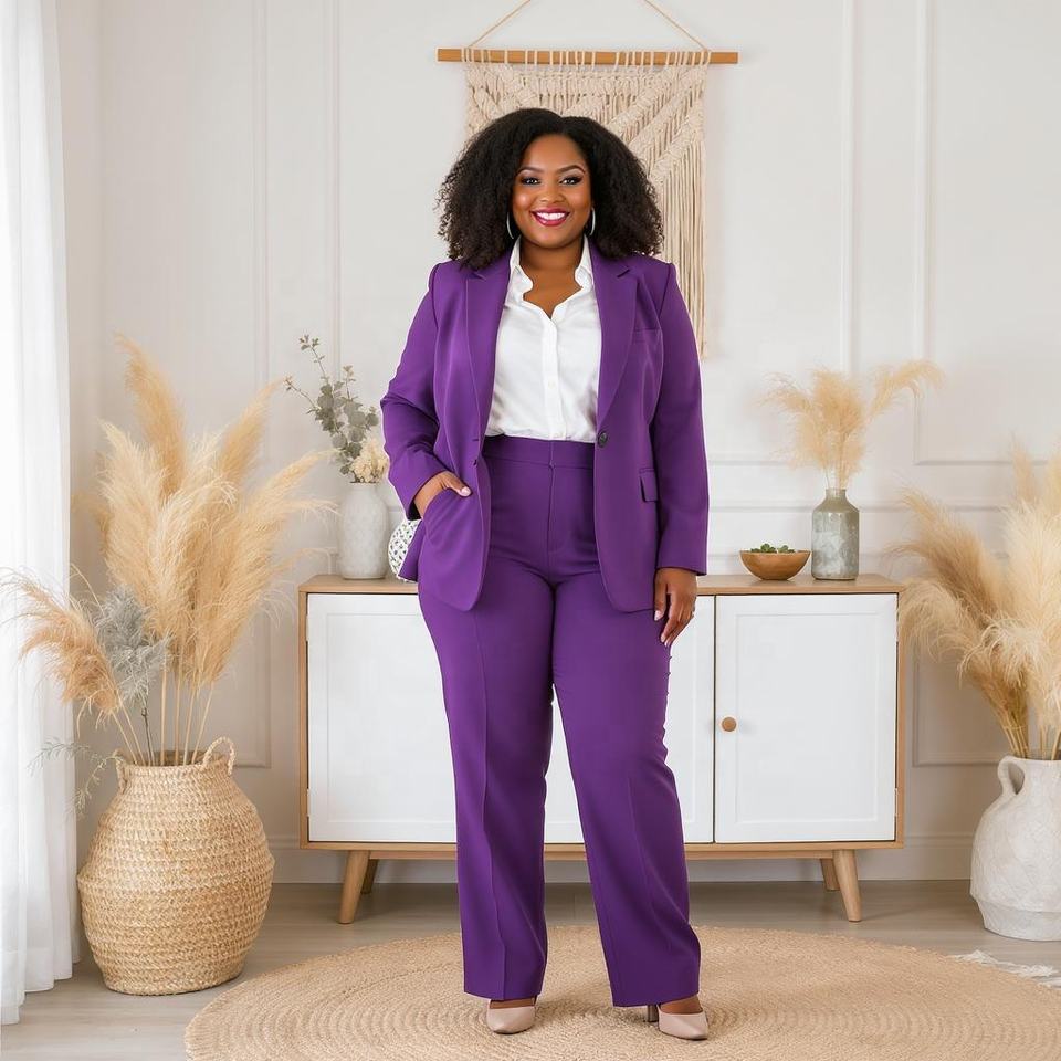 Trajes de pantalón de talla grande a la moda para mujer Trajes de negocios elegantes de 2 piezas para oficina o eventos