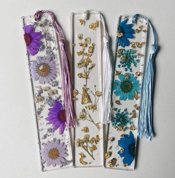 Marcapáginas Decorativos de Resina Prensada con Diseño de Moda, Coloridos, con Flores Secas Naturales de Margarita y Borlas, Diseño Art Deco, Promocionales