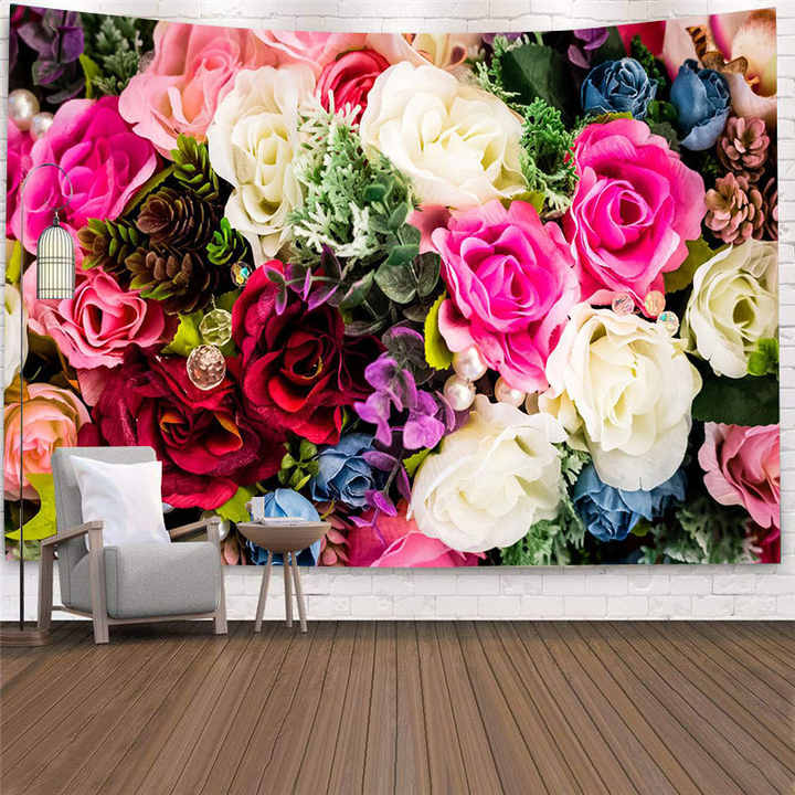 Tapiz colgante de pared de flor de rosa roja de moda decoración del hogar colcha almohadilla de dormir tapices de flores de poliéster