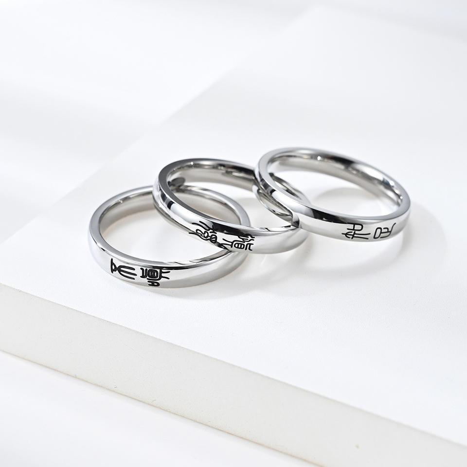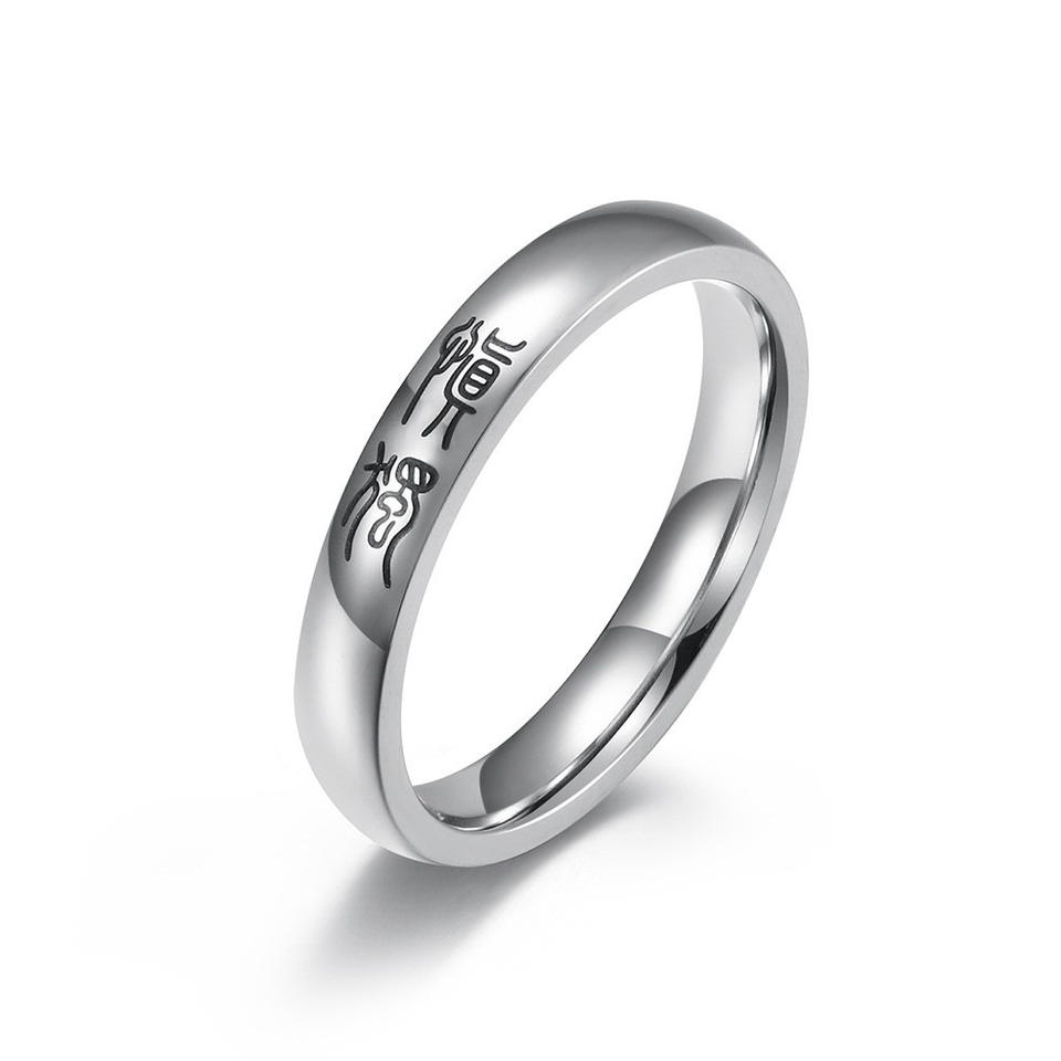 Anillo de moda con caracteres de sello, regalo unisex, joyería, ten cuidado con tus acciones cuando estás solo, evita la ira, sé contento