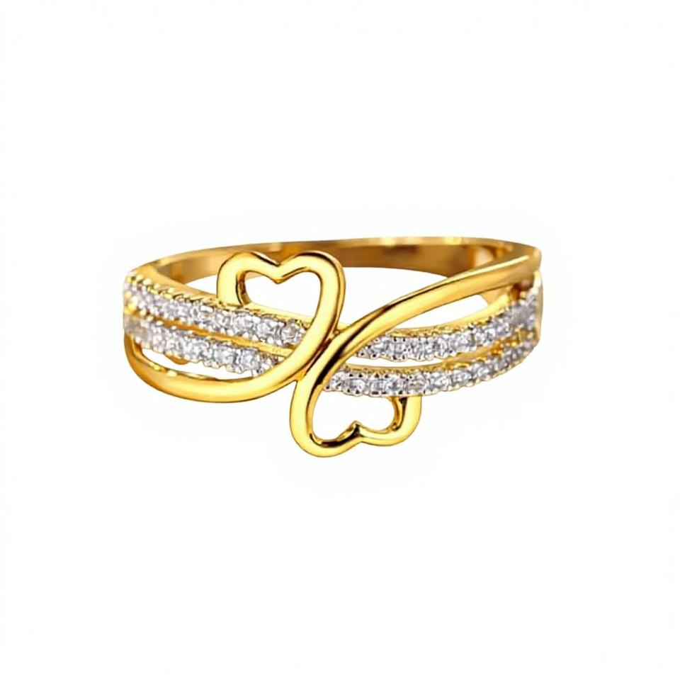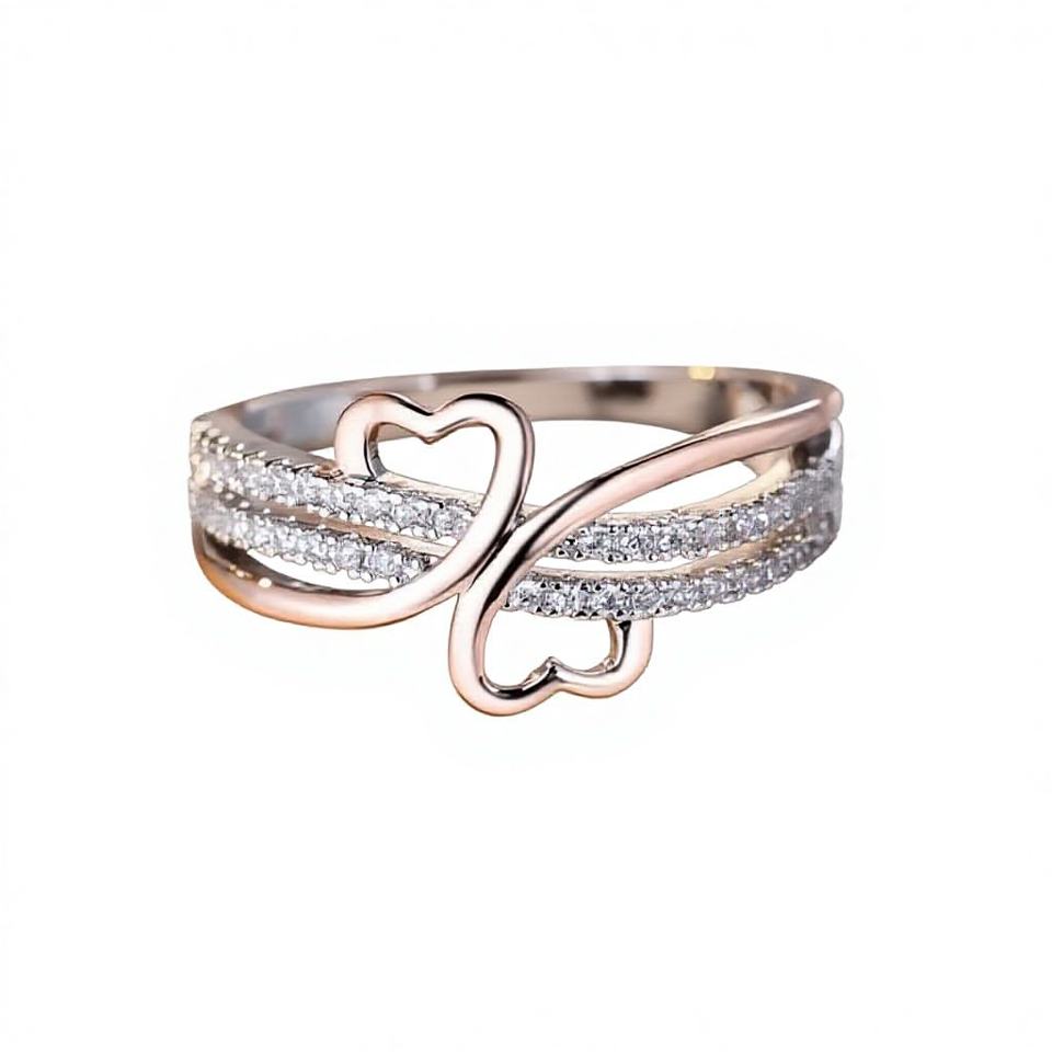 Anillos de Moda, Anillo de Diamantes de Oro de Dos Tonos, Anillos de Doble Corazón para Mujer en Oro de 14K, Diamante Cultivado en Laboratorio, Anillo de Boda con Pavé