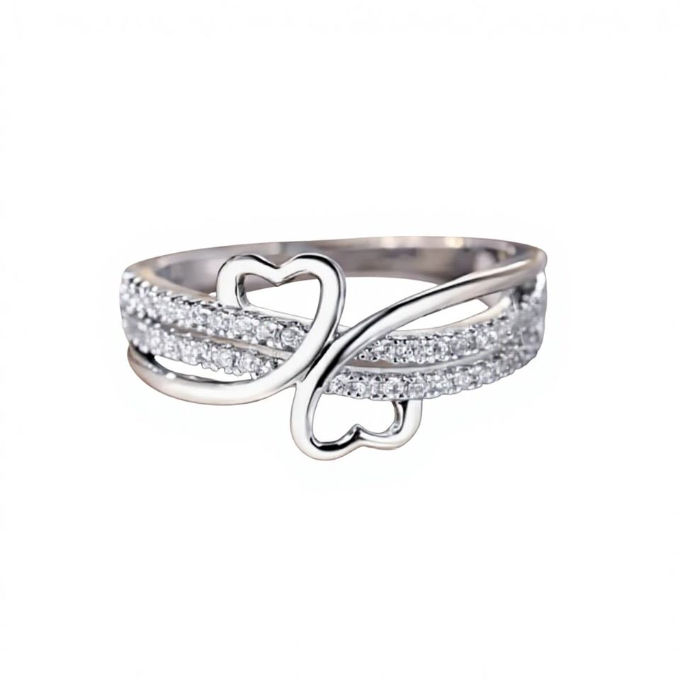 Anillo de Boda Bypass de Oro Sólido de 14K en Dos Tonos con Forma de Corazón Dual