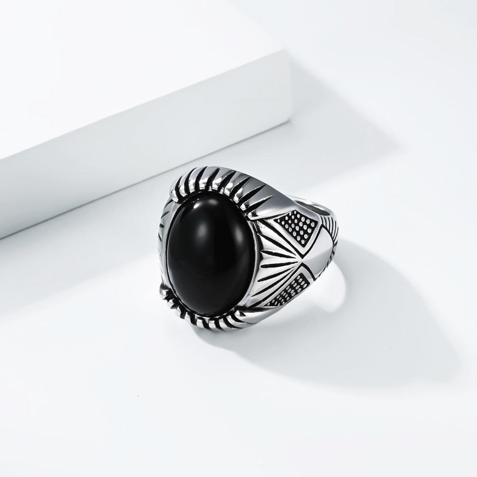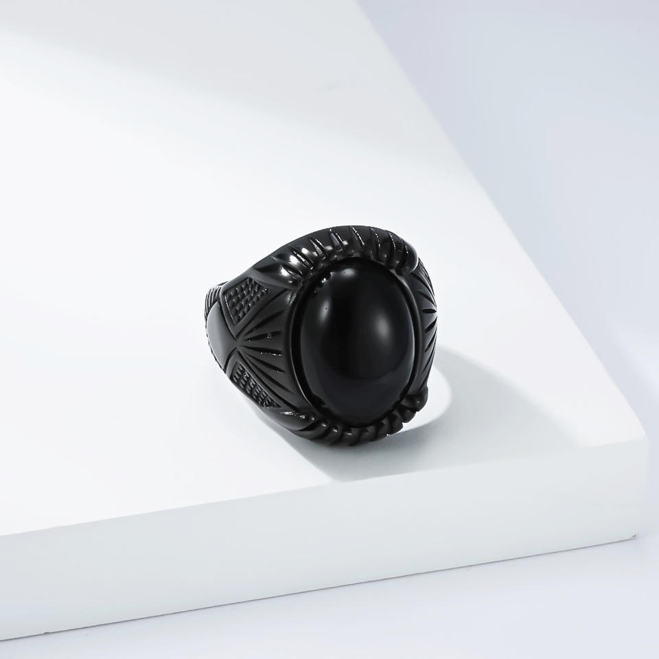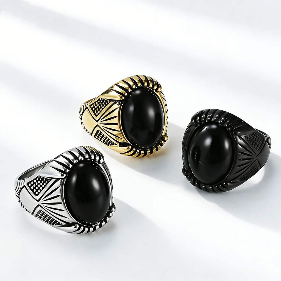 Anillos de Moda Geométricos con Incrustaciones de Piedras Preciosas Negras, Joyería Unisex de Regalo, Acero Dorado y Negro