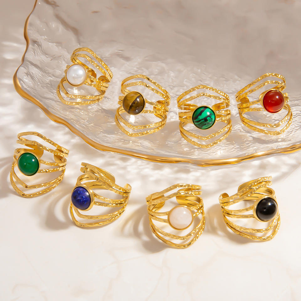 Anillos de Moda con Forma Geométrica, Incrustaciones de Piedras, Joyería para Fiesta, Chapado en Oro de 18K, Acero Inoxidable para Mujer