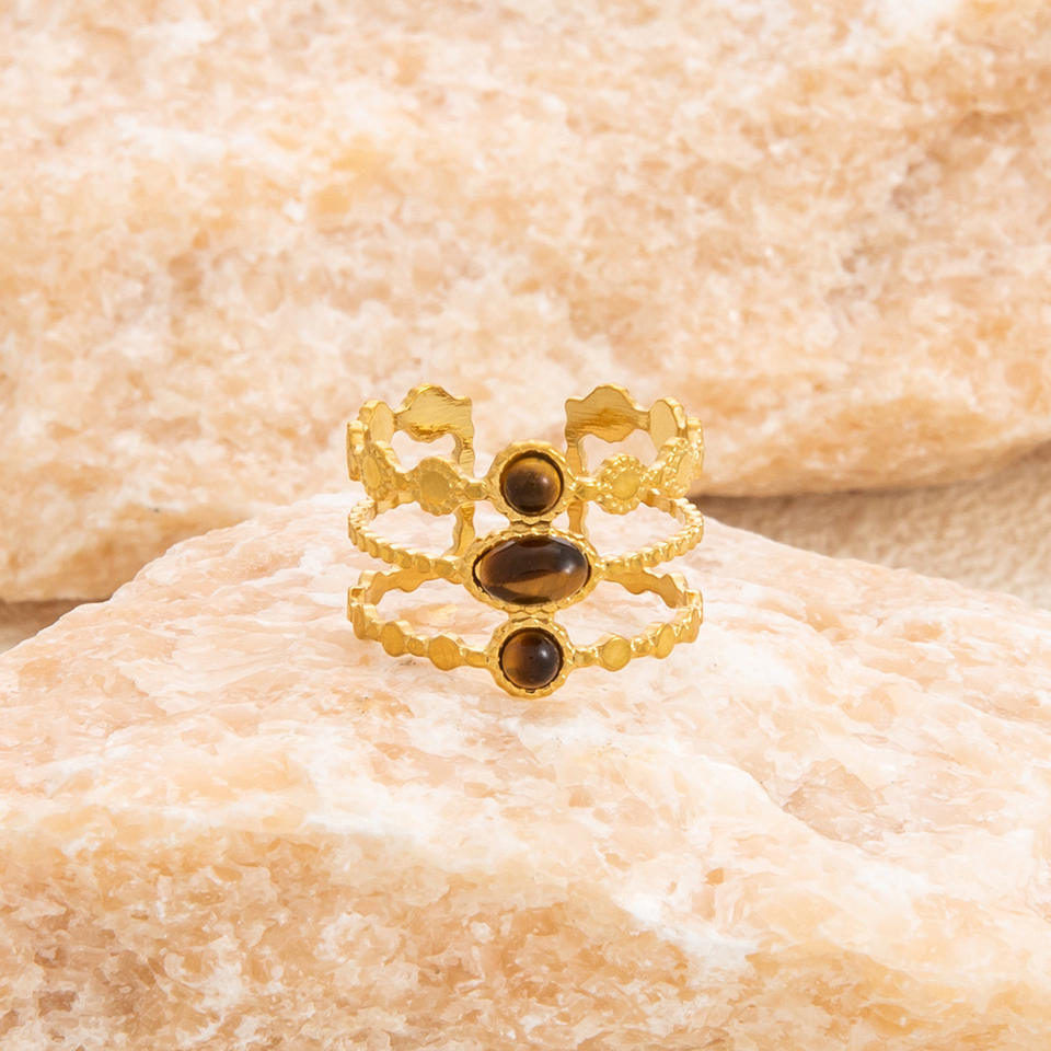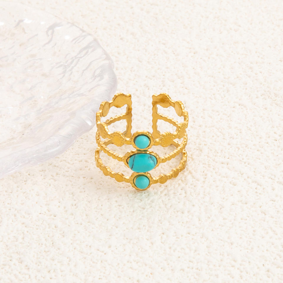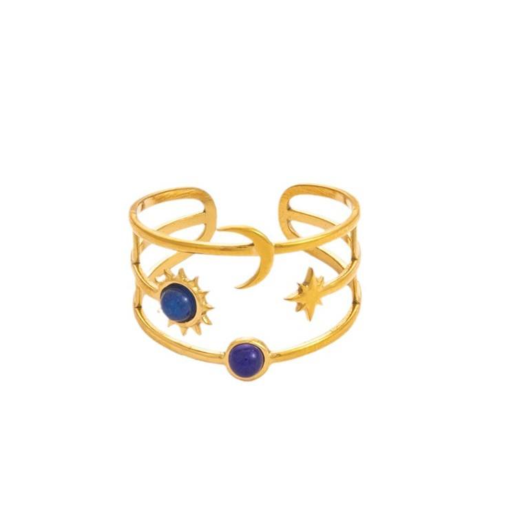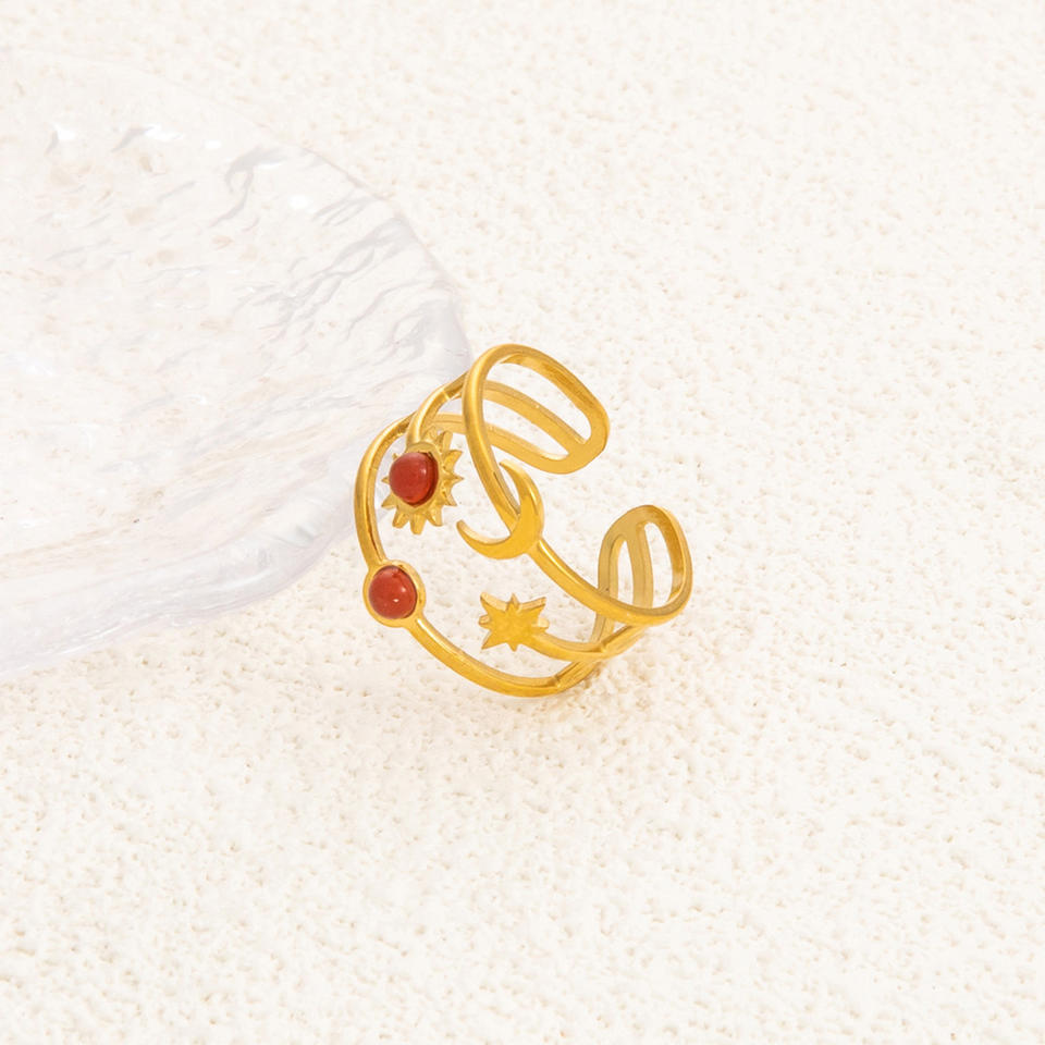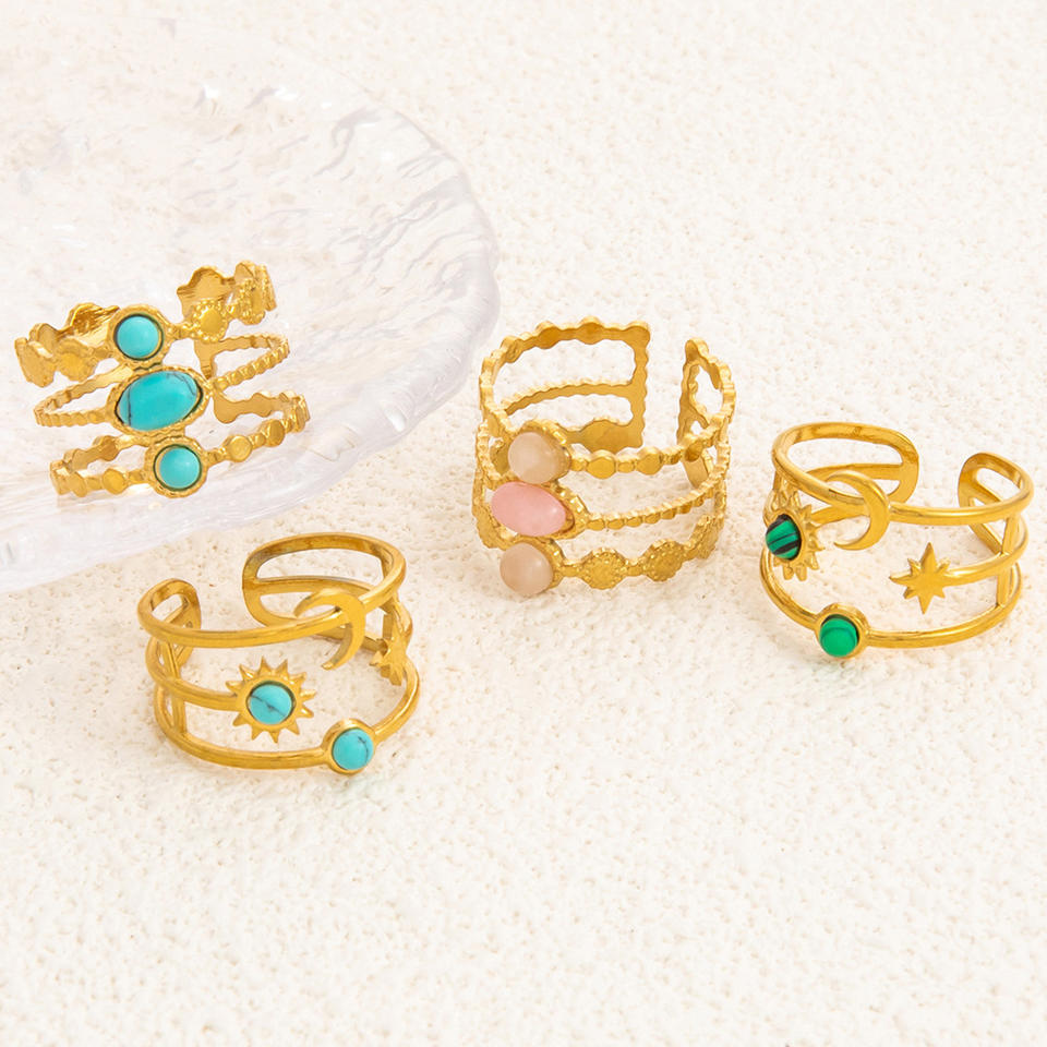 Anillos de Moda Chapados en Oro, Diseño Abierto en Forma de U con Estrella y Luna, con Turquesa y Piedras Rosas, Joyería Unisex para Regalo