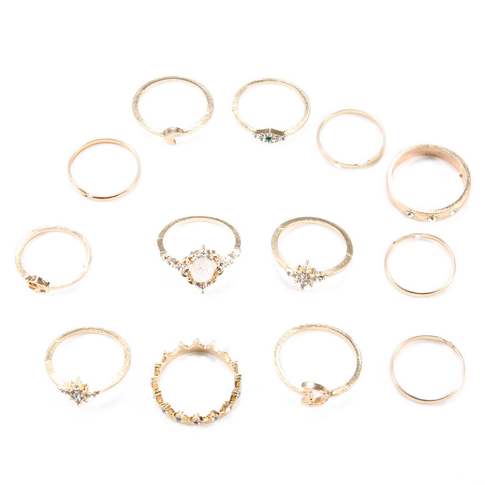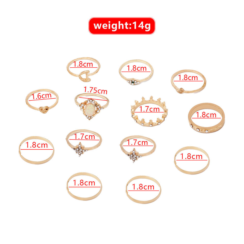 Juego de Anillos de Moda con Ópalo, Diseño de Estrella, Luna y Corona, Anillo de Cóctel, Joyería para Mujer, Regalo, Juego de 13 Piezas