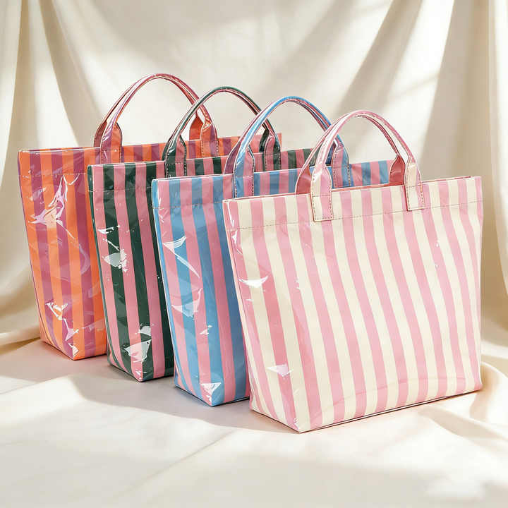 Bolso de hombro de moda, bolso de PVC de caucho reciclado con asas, asa Wilden, logotipo impreso con letras personalizadas, bolso de PVC para la playa