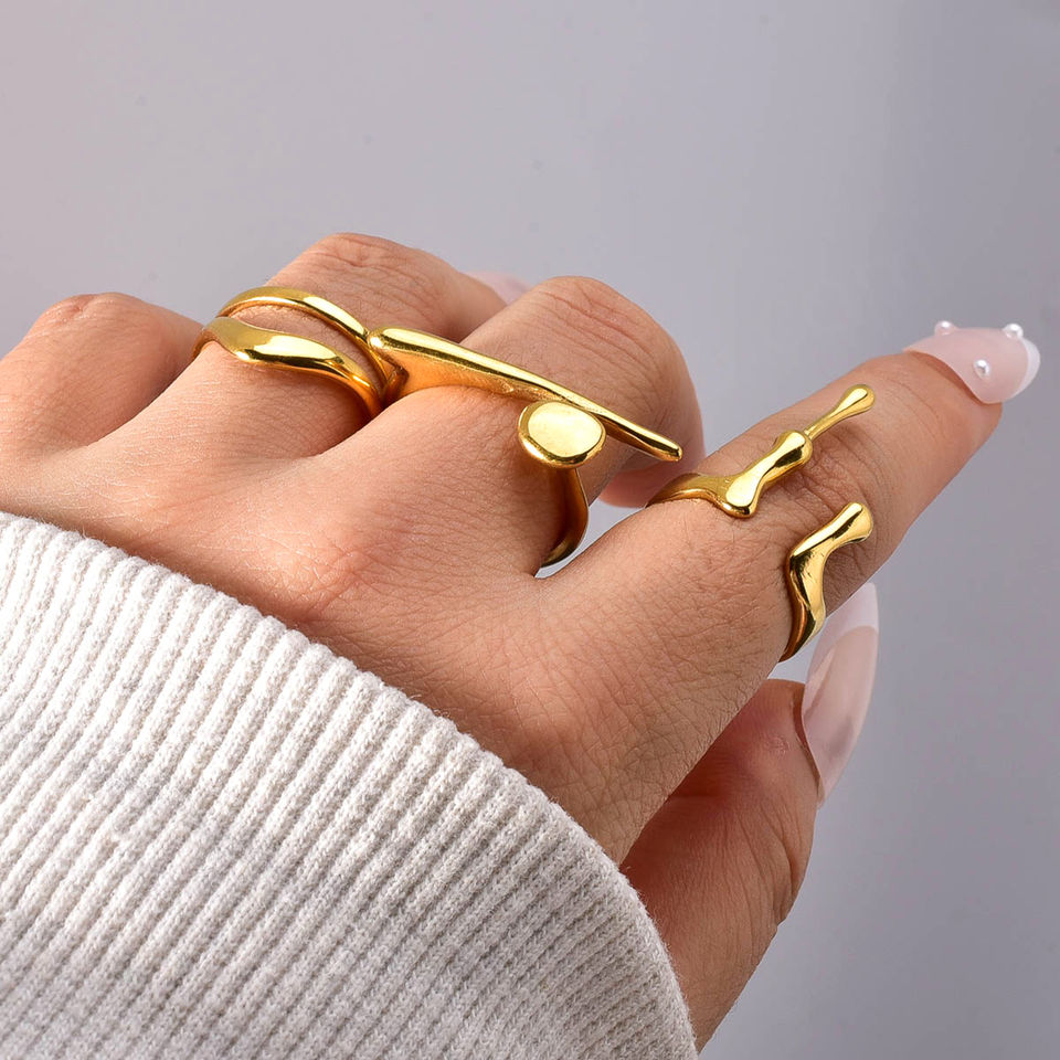 Anillos de Joyería Sencillos y Modernos, Chapados en Oro de 18K, Diseño de Bola, Corazón y Lazo, Acero Inoxidable, Ajustables, para Mujer