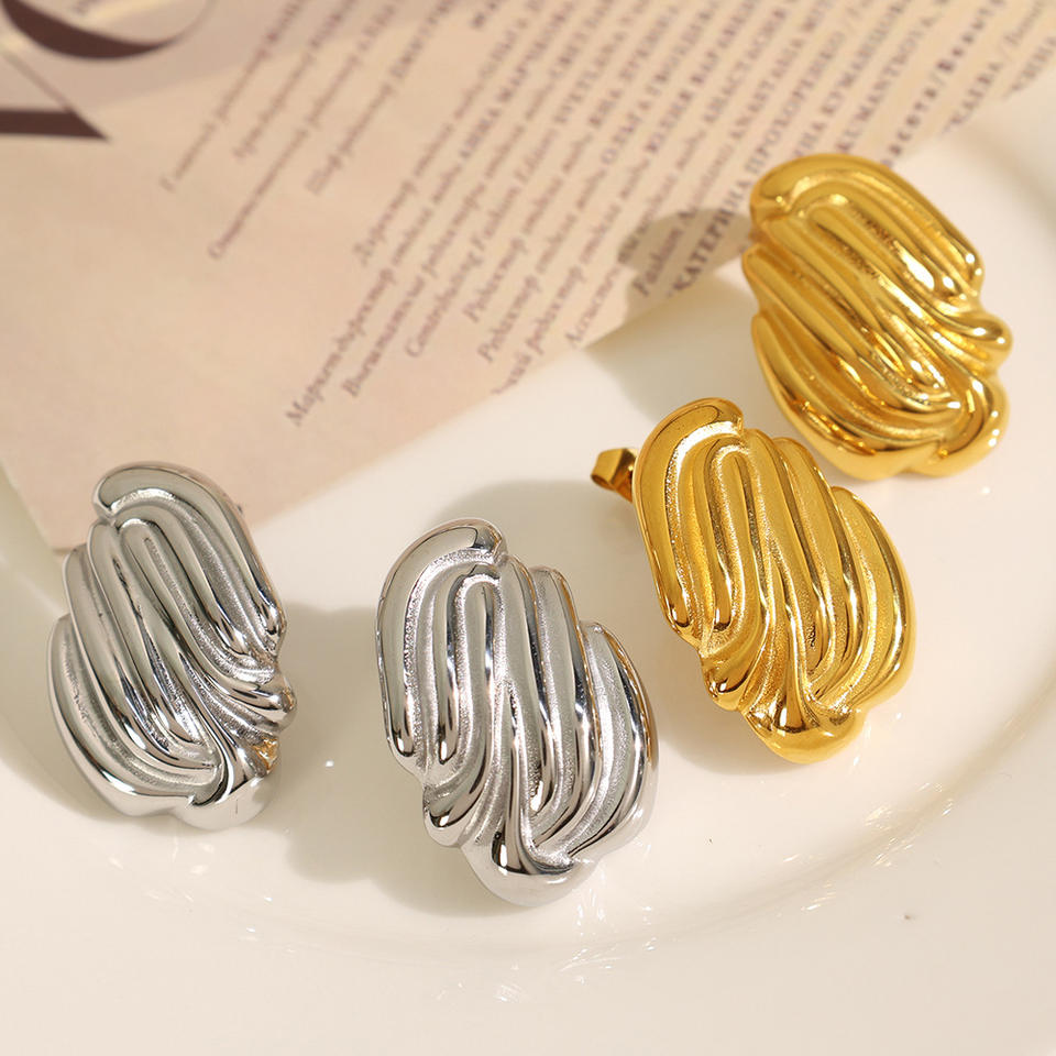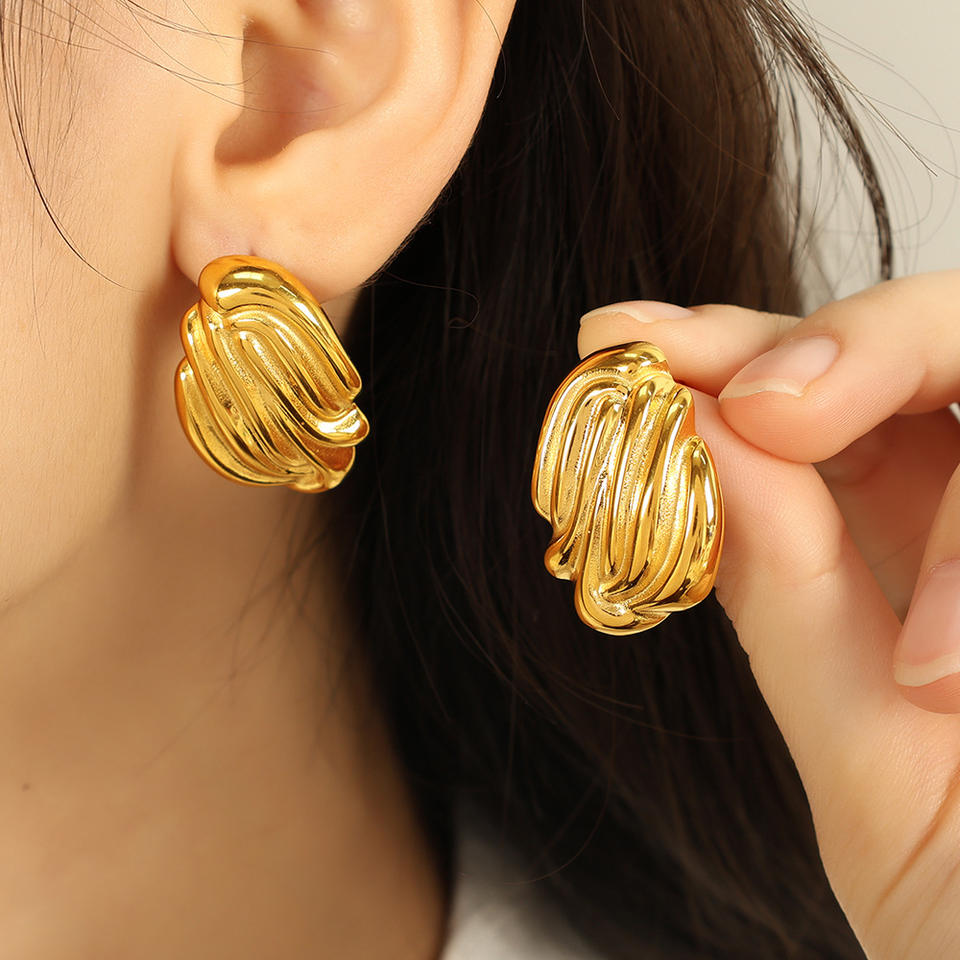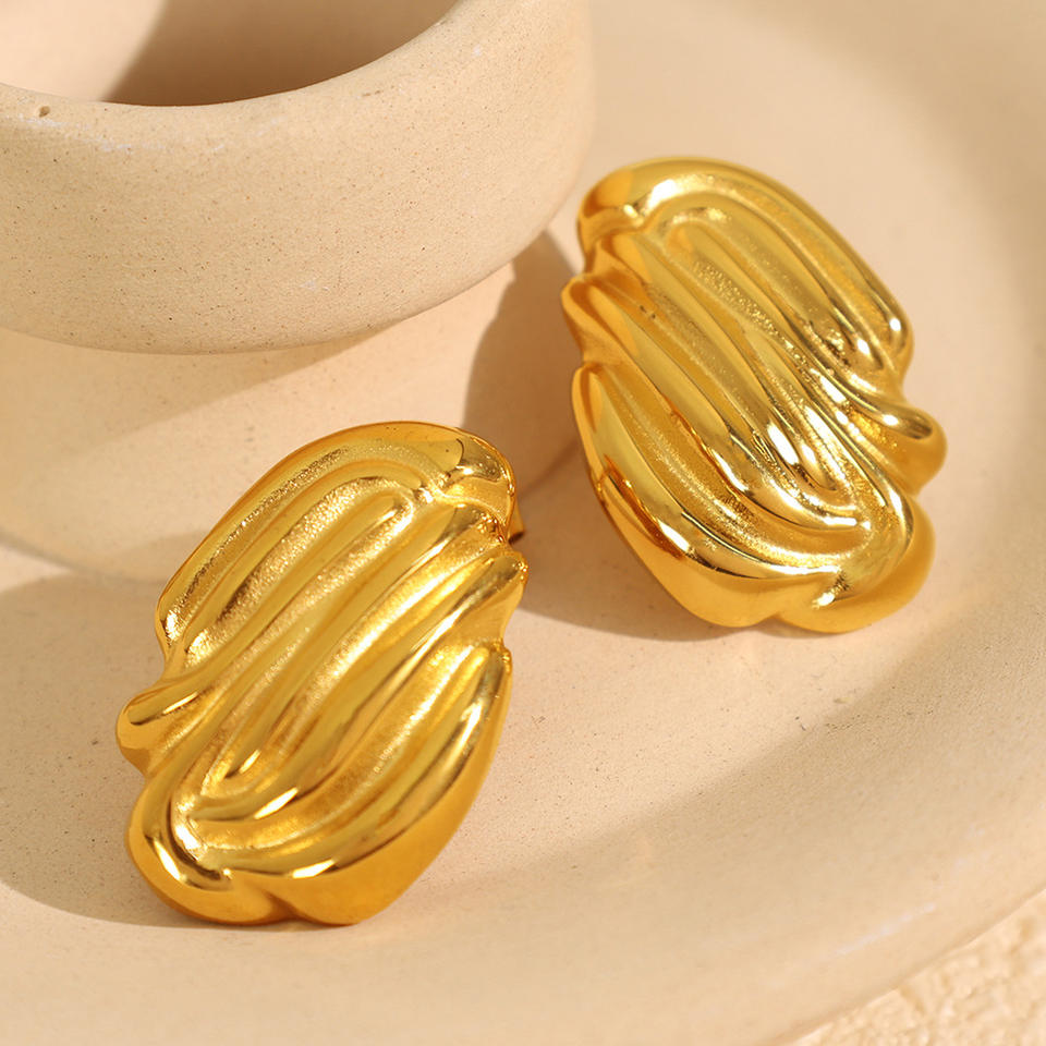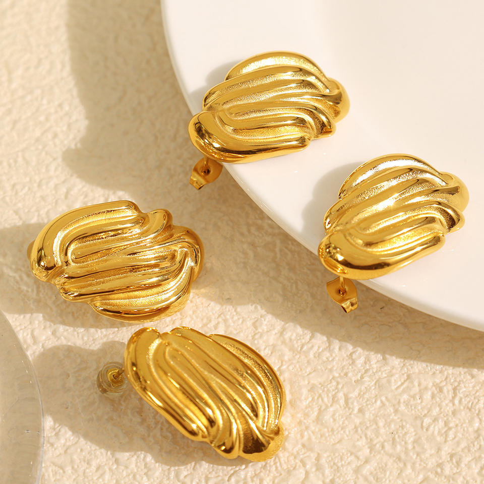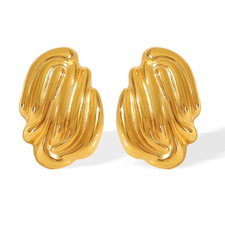 Pendientes de Moda con Textura Geométrica de Concha, Acero de Titanio, Chapados en Oro de 18k, Plata, Modelo EH261
