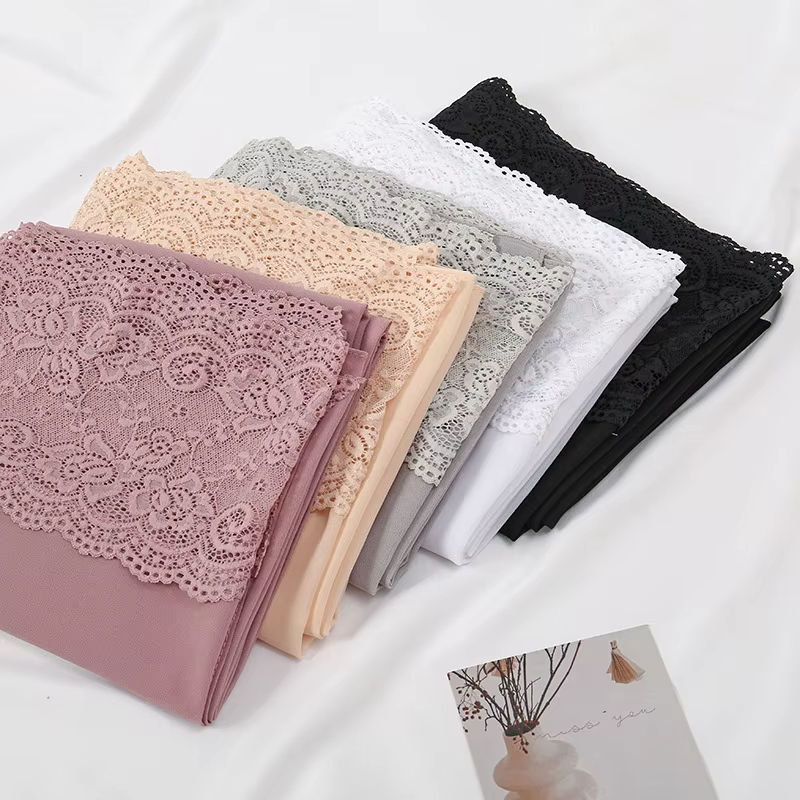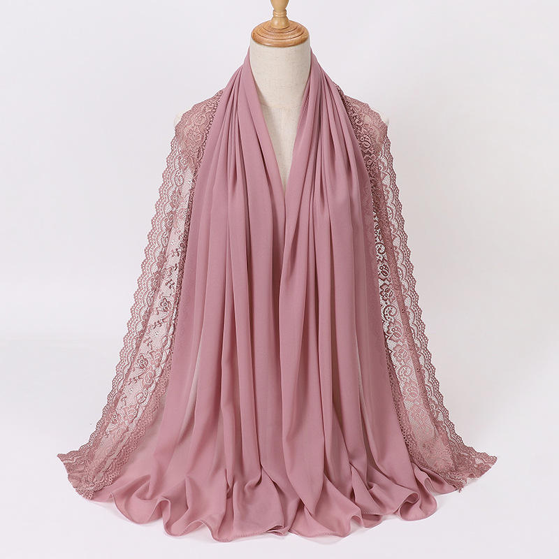 Gasa, borde de encaje, poliéster, Perla gasa, liso gasa hijab