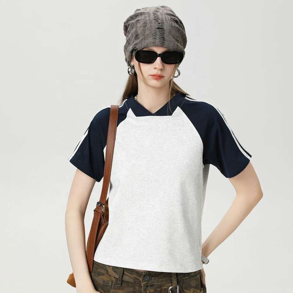 Camisetas de manga corta con cuello en V para mujer de verano a la moda Camisetas de manga a rayas a juego para mujer