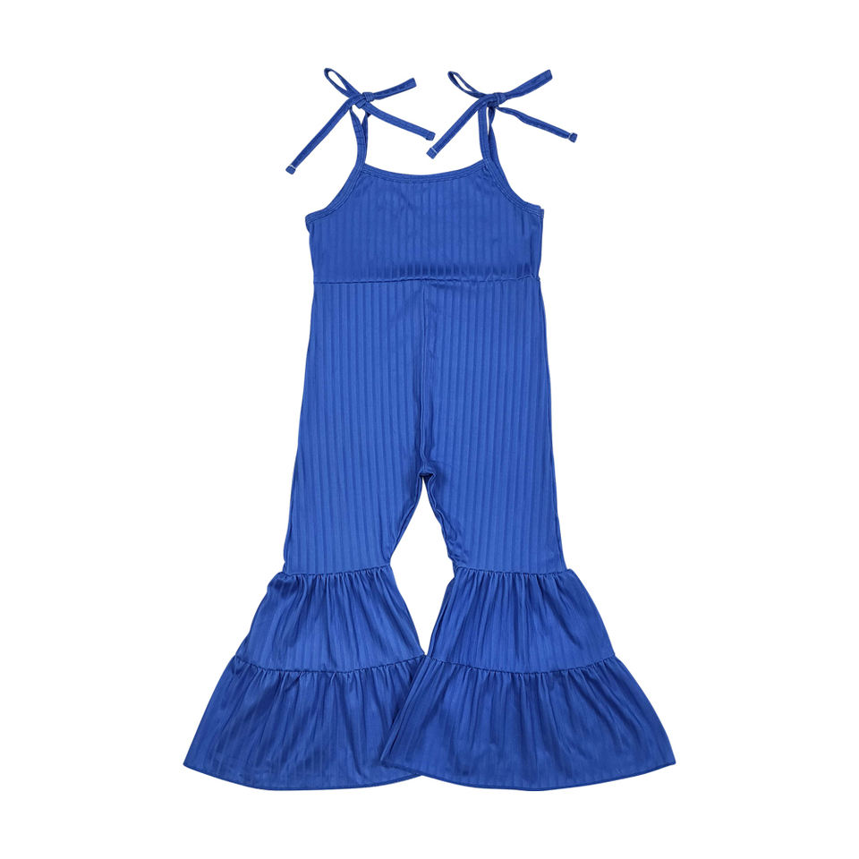 Punta de moda Color sólido azul acanalado poliéster/algodón verano bebé niñas conjunto ropa deportiva ropa de día Boutique venta al por mayor caliente