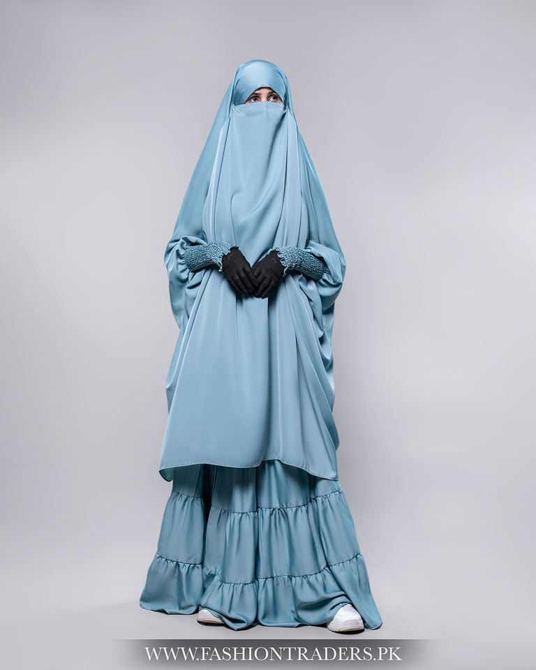 Product name:Two Piece Scrunch Sleeves Jilbab With Trio Ruffle Skirt