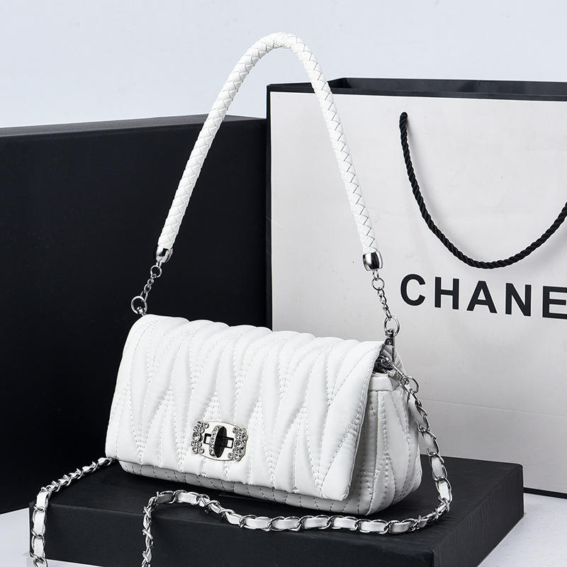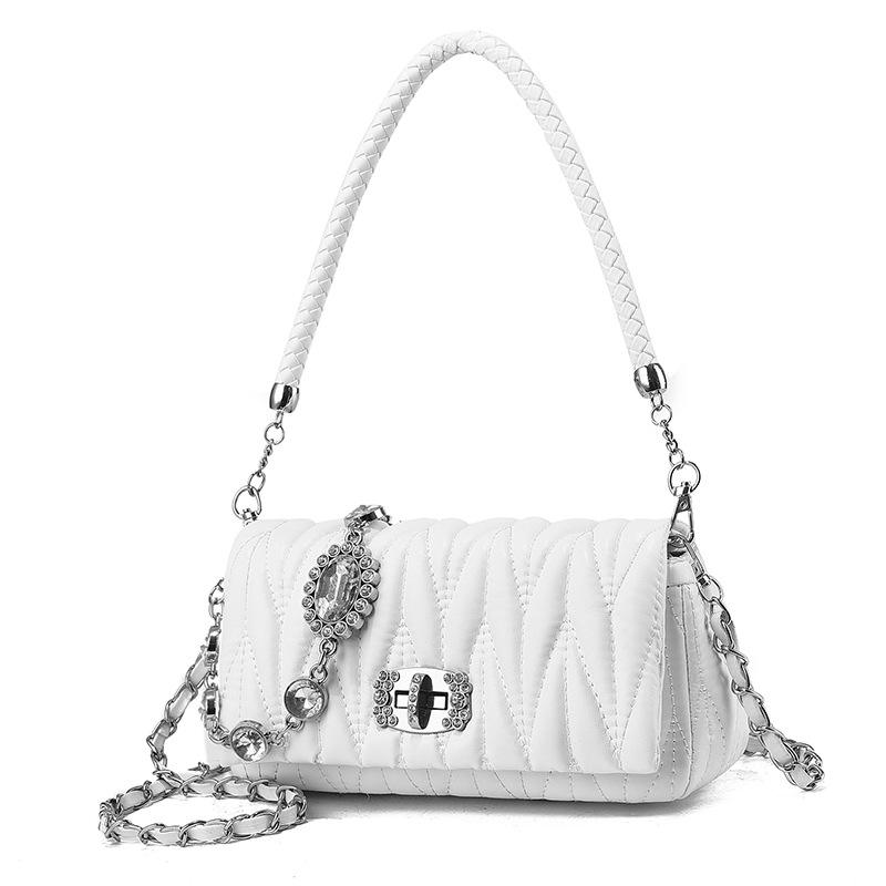 Bolso de cuero suave a la moda Bolso Marca Lujo Mujer nuevo bolso de cadena de diamantes de imitación bolso plisado de un solo hombro