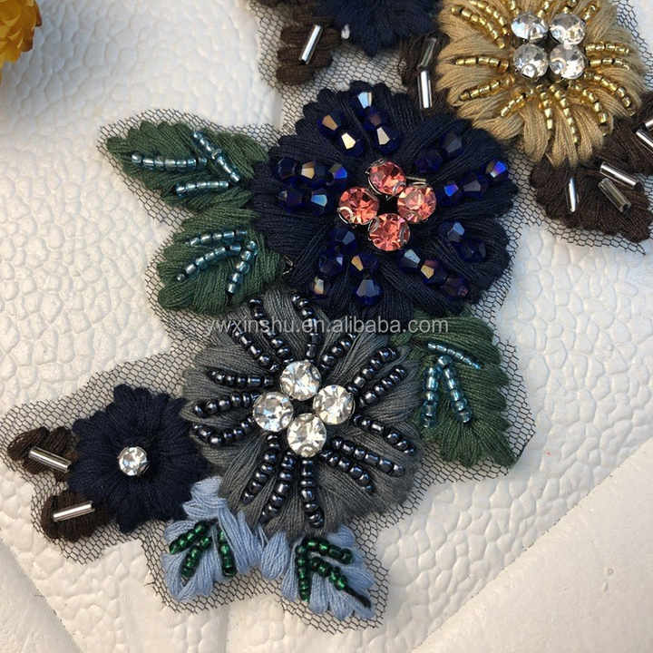 Parches decorativos de tela con cuentas hechas a mano con bordado de flores transparentes, de colores versátiles, a la moda