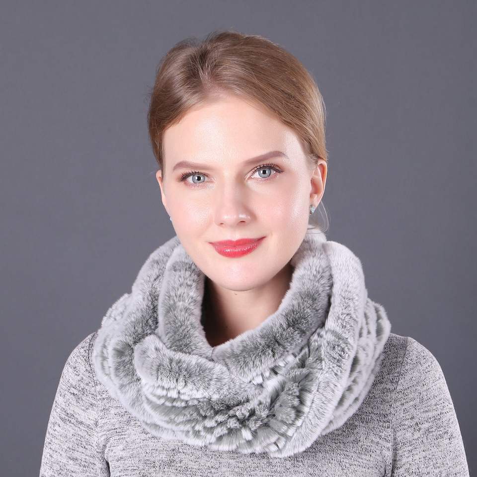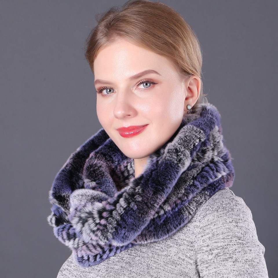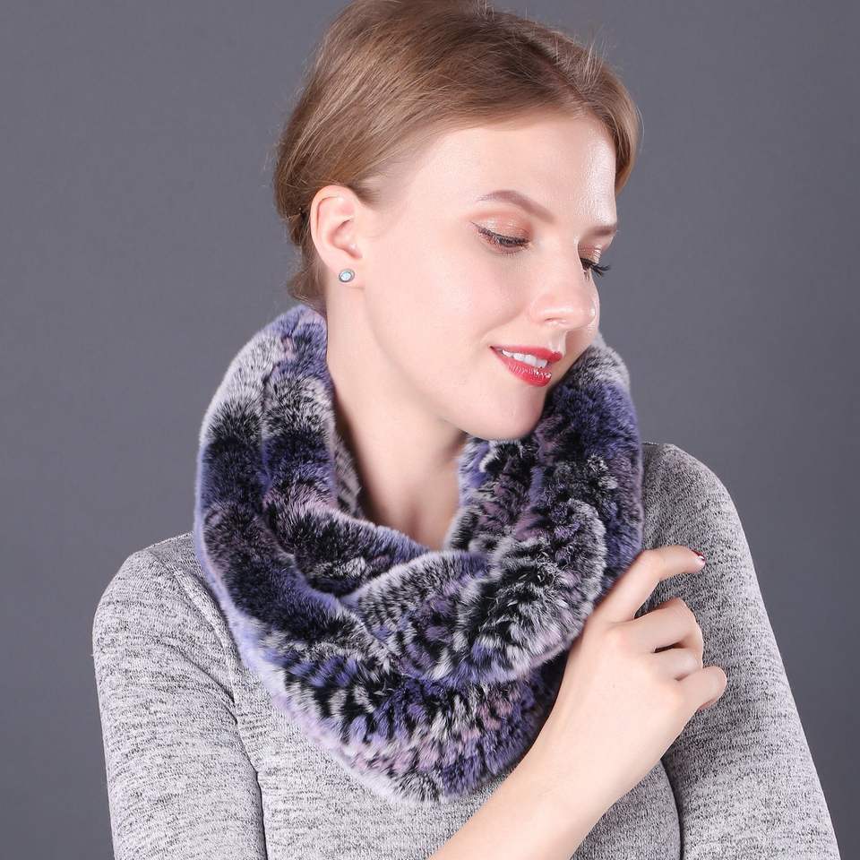 Bufandas Infinitas de Piel de Conejo Rex para Mujer, Multicolores, Cuello de Invierno, Bufanda de Piel Tejida a Mano para Mujer