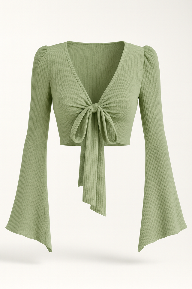 Suéter Corto de Punto Acanalado con Lazo Delantero para Mujer, Top Corto de Manga Larga Suave y Elástico para Uso Diario, Proveedor OEM ODM