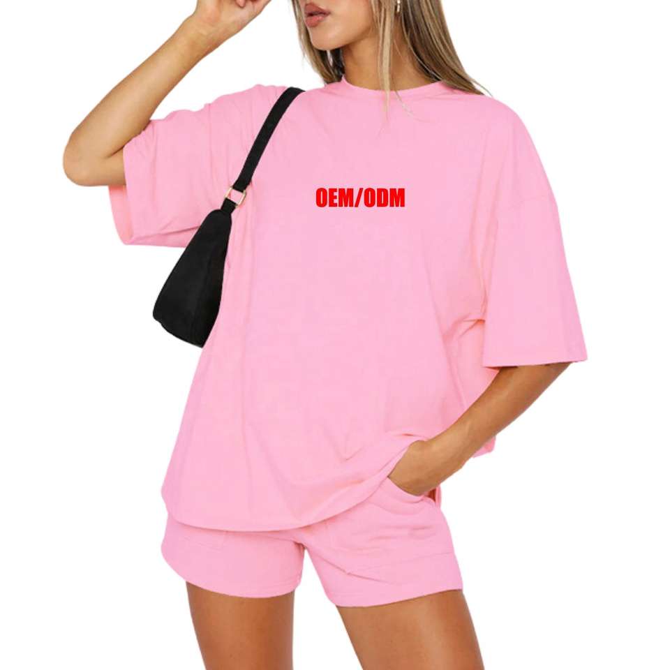 Moda para mujer de manga media Loungewear personalizado Casual estampado en blanco camiseta conjunto