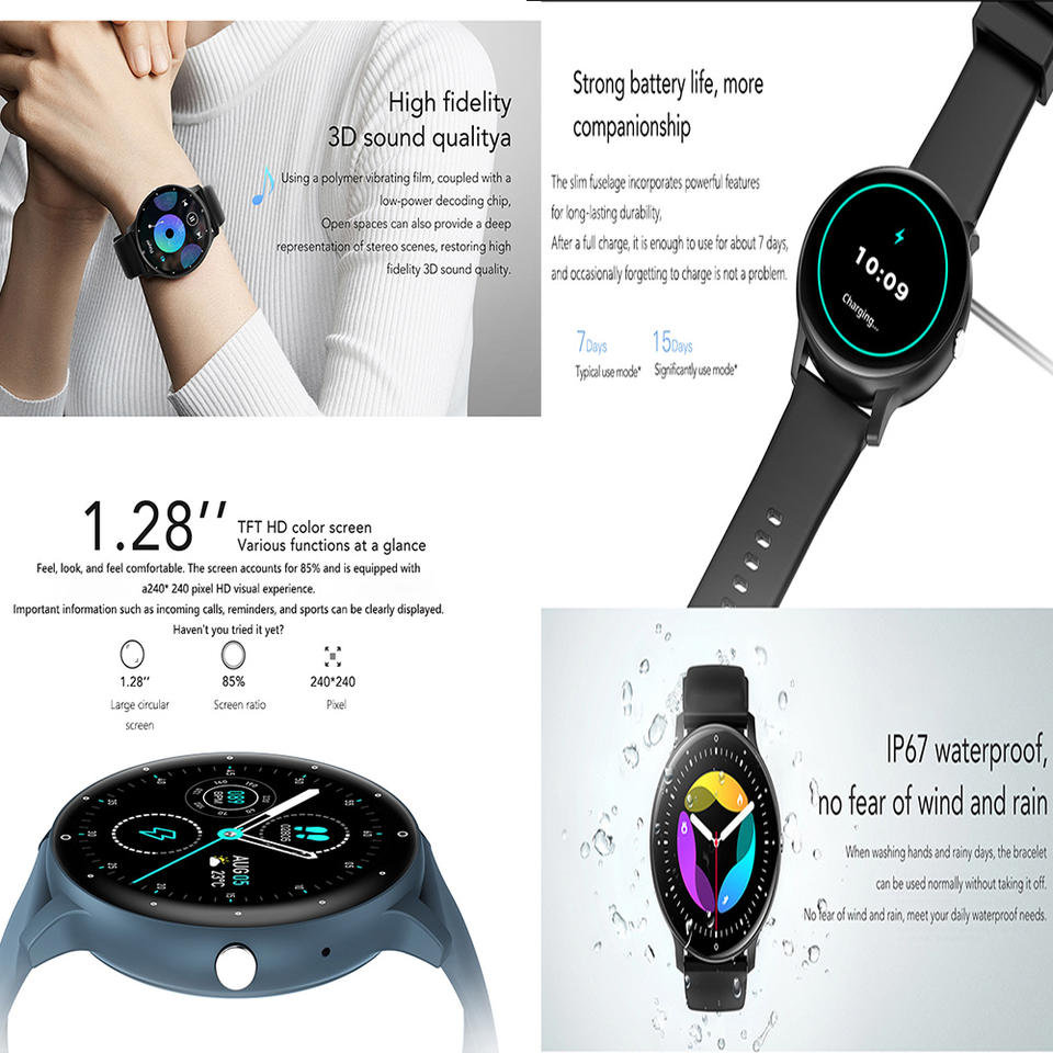 Cronógrafo, Calendario, Reloj despertador, Reserva de marcha, Control remoto, Cuenta atrás, Noctilucentes, Rastreador de sueño, seguimiento de forma, Podómetro, Recordatorio de llamada, Respuesta telefónica, Mensaje emergente, Recordatorio de mensajes, Marcar llamada, Monitor de ritmo cardíaco, Seguimiento de la actividad, Notificaciones de Medios sociales, Grabación de Audio, Rastreador de calorías, Llamada de voz, Monitor de respiración, Rastreador de distancia, Rastreador multideporte, Reproductor DE MÚSICA, Recordatorio sedentario, Gestión menstrual, Asistente de voz AIFunción
