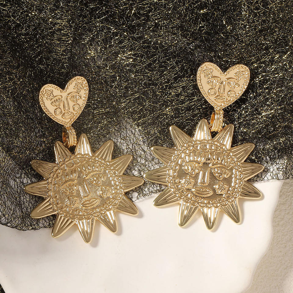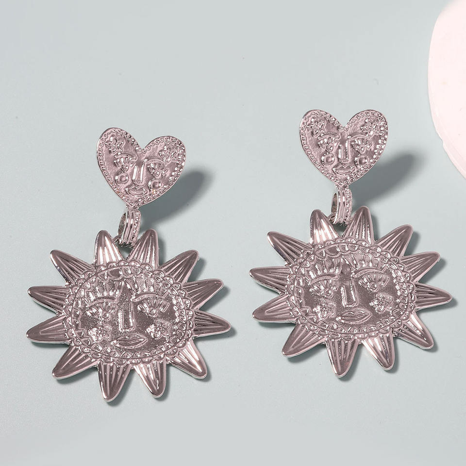 Pendientes de corazón con colgante de girasol de aleación de moda