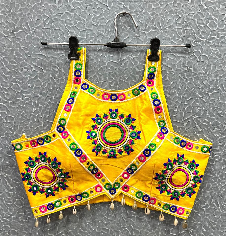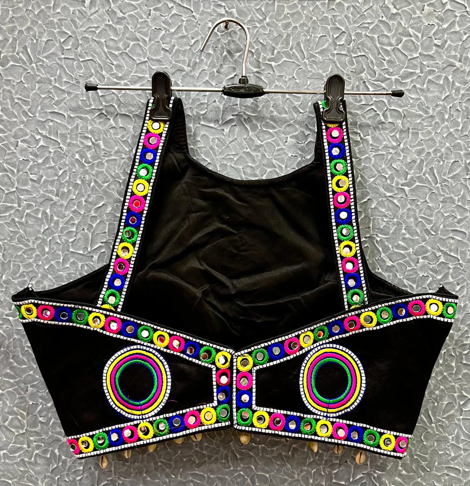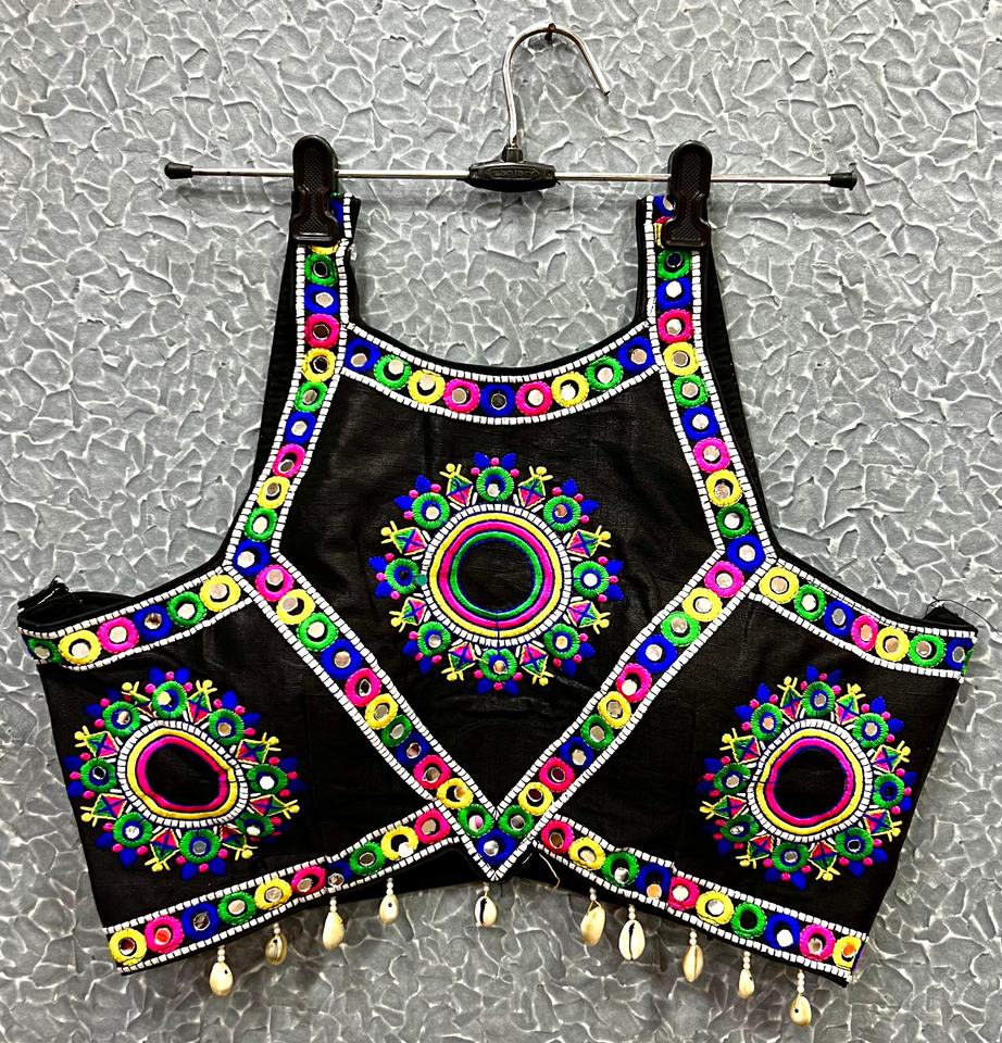Blusa de moda Colorido Multihilo Trabajo Espejo real Trabajo Fancy Back Kodi Latkan-Tejido para bodas Sin mangas adjuntas