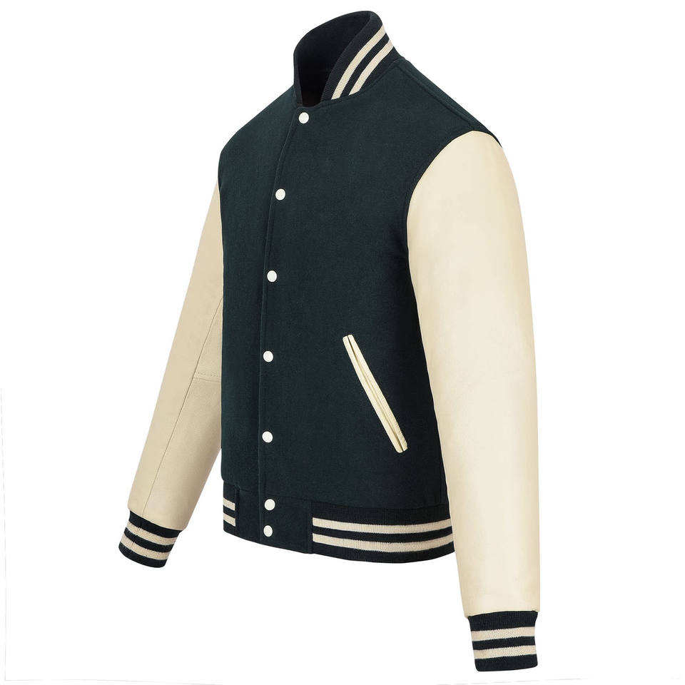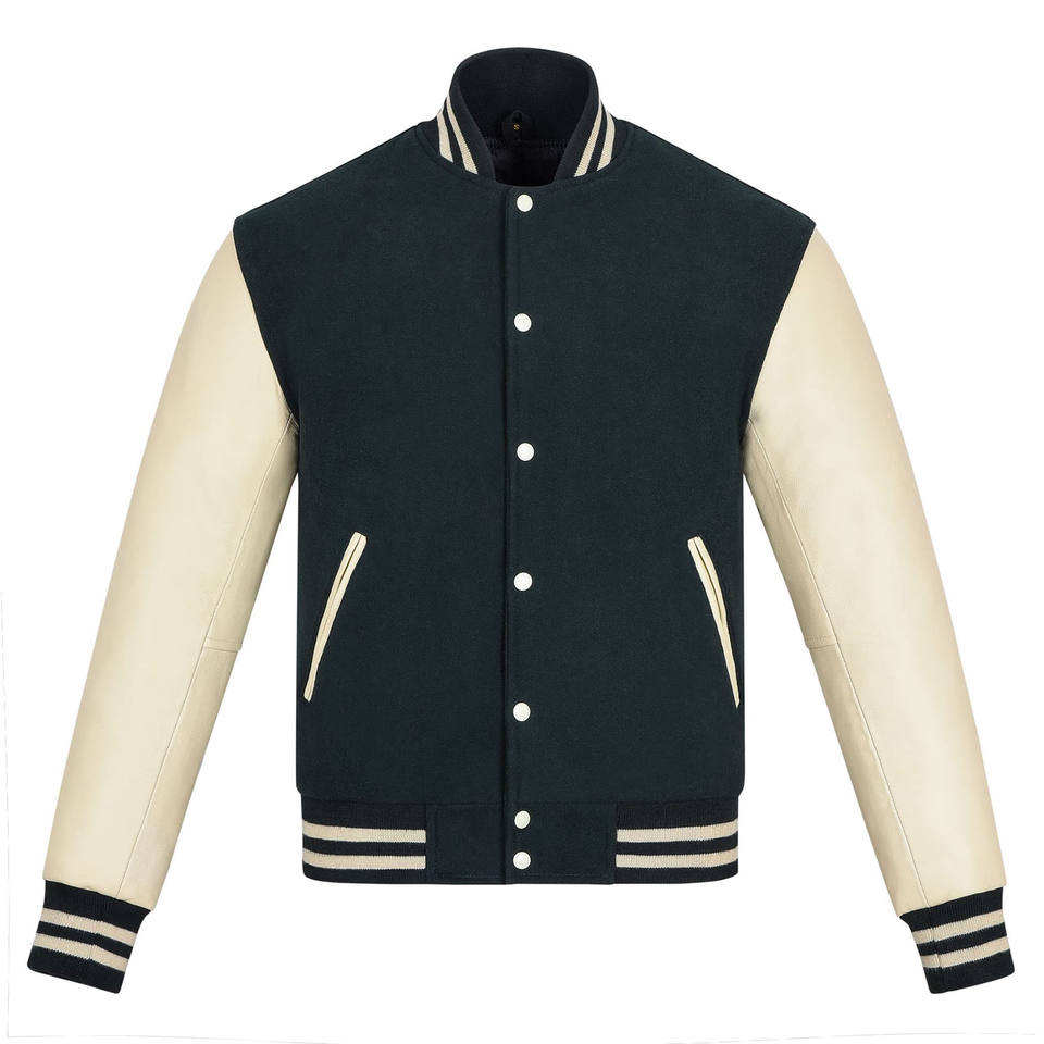 Chaqueta de béisbol Bomber Varsity de moda Chaqueta de béisbol de poliéster de manga de cuero para hombre Chaquetas universitarias personalizadas de gran tamaño