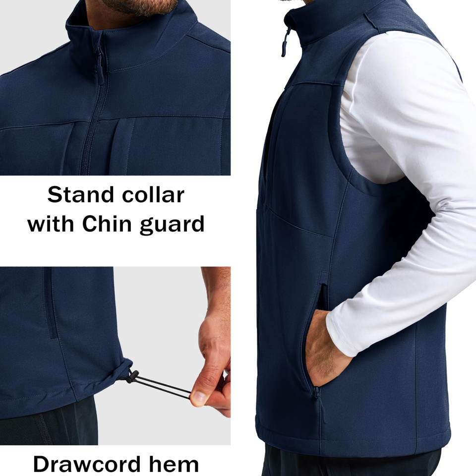 Chaleco Softshell Transpirable y Moderno para Hombre, Ligero y Cortavientos, Cuello Alto, Cierre Frontal, Longitud Regular