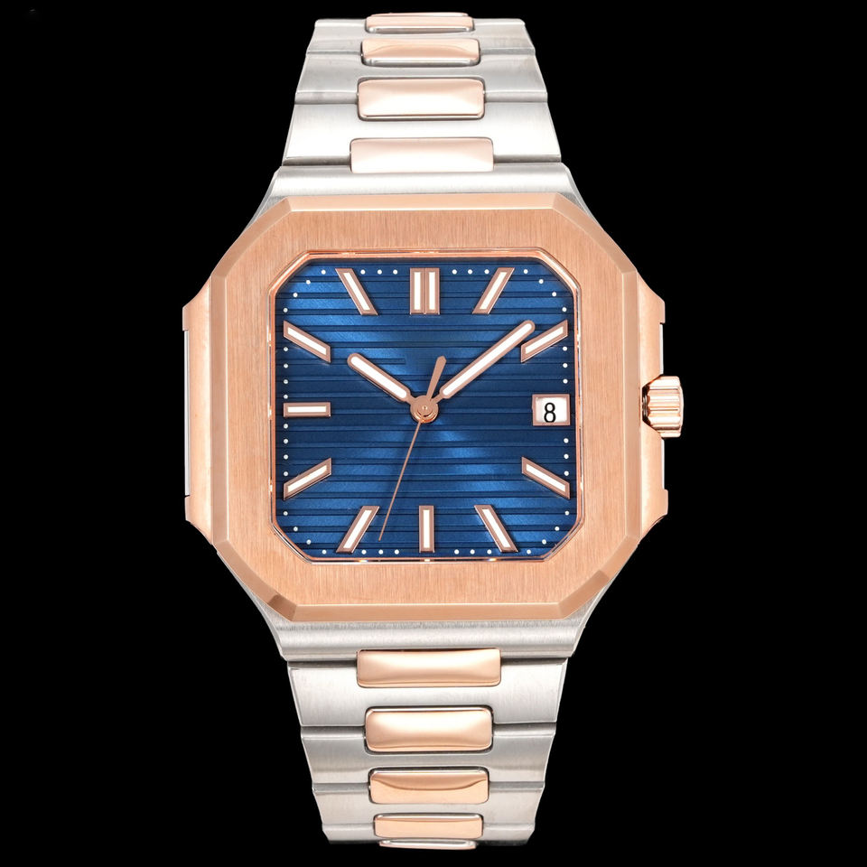 Reloj de Negocios Elegante para Hombre, Caja Cuadrada de Acero Inoxidable en Oro Rosa, Cristal de Zafiro, Movimiento Mecánico, Visualización de Fecha