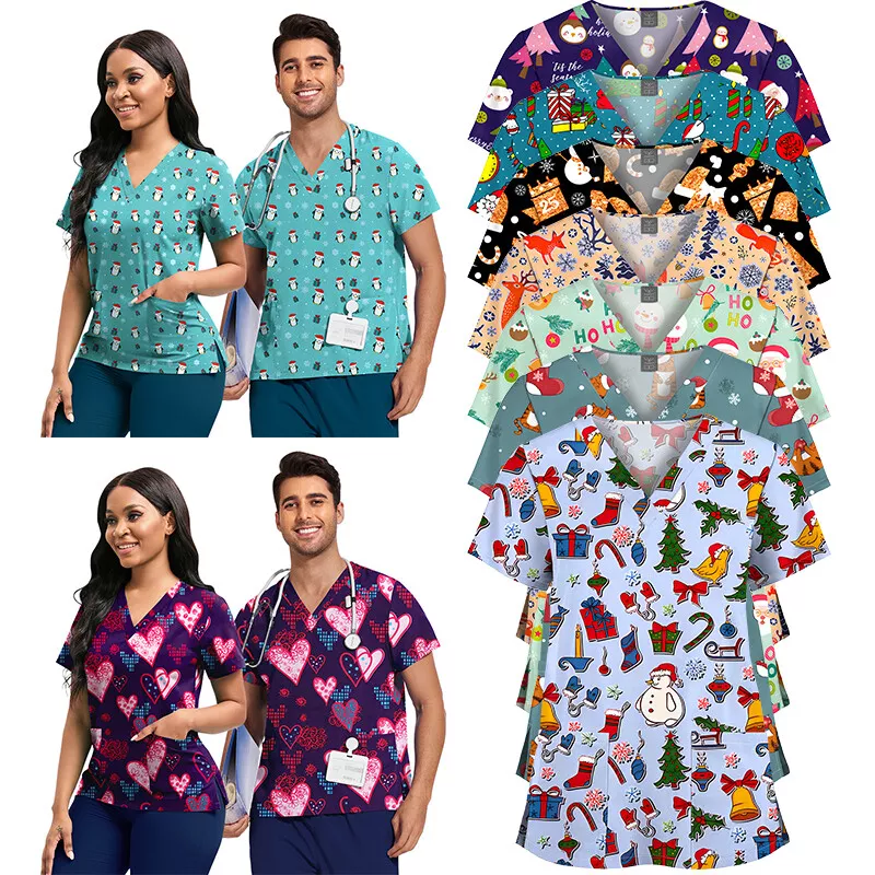 Uniformes impresos de moda con logotipo personalizado para Doctor y Hospital, conjunto de uniformes de enfermería transpirables de Enfermería de tela elástica TS