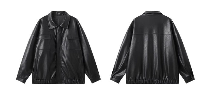 Moda personalizada negro Faux cuero poliéster abrigo chaqueta de gran tamaño de manga larga hombres de talla grande a prueba de viento
