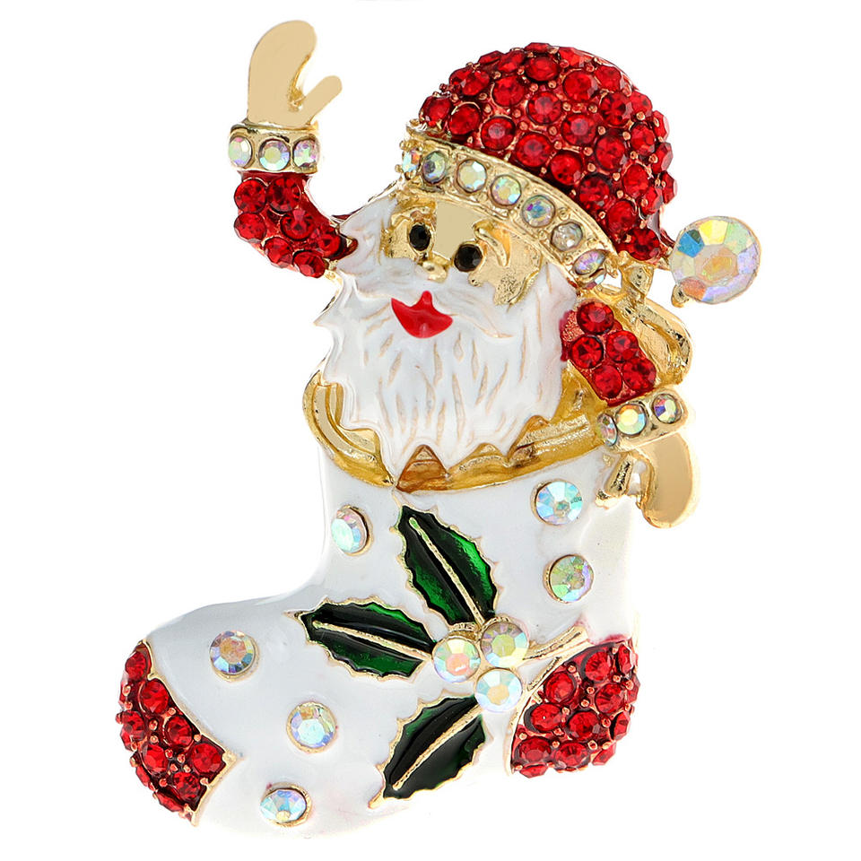 Moda lindo diamantes de imitación Santa Claus Festival de Navidad regalo broche en forma de calcetín para accesorios de ropa