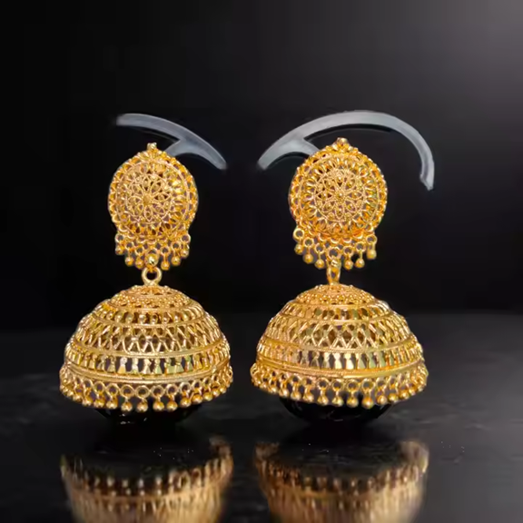 Conjunto de Pendientes de Diseño Moderno con Pendientes Estilo Jhumka Chapados en Oro de 22 Quilates de Diseño Tradicional, Joyería para Mujer