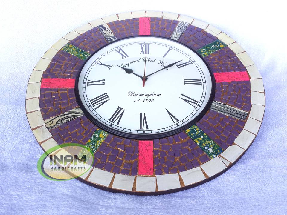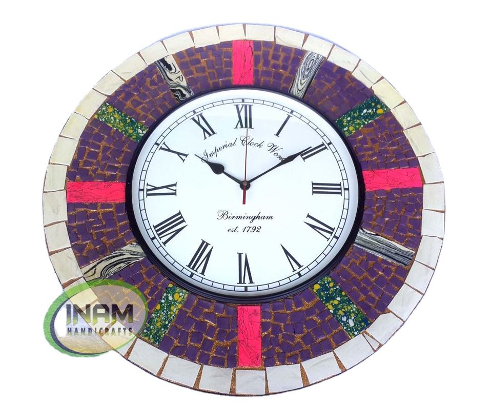 Reloj de pared analógico hecho a mano, moderno/de diseño, con mármol multicolor y diseño elegante por INAM HANDICRAFTS
