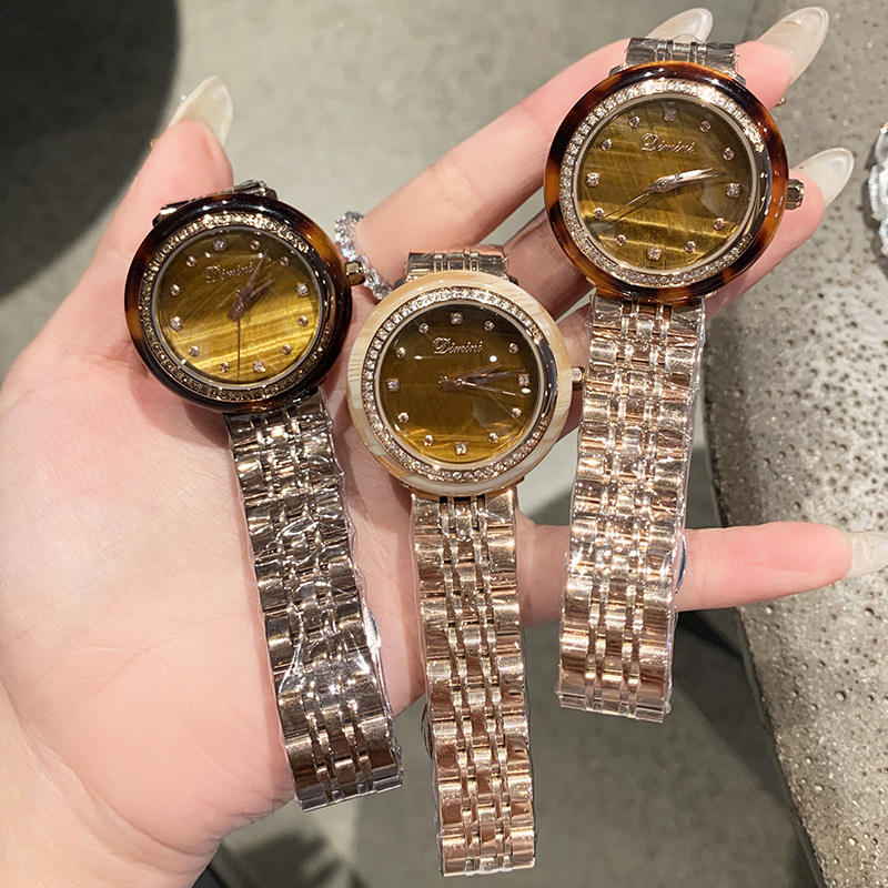 Reloj de Mujer con Piedras Preciosas de Moda, Reloj de Pulsera con Piedra de Ojo de Tigre, Reloj de Cuarzo Informal