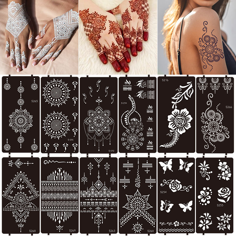 Plantillas de tatuaje corporal temporal de diseño mixto de moda para mano, pie, diseño de papel reutilizable, Impresión de arte manual