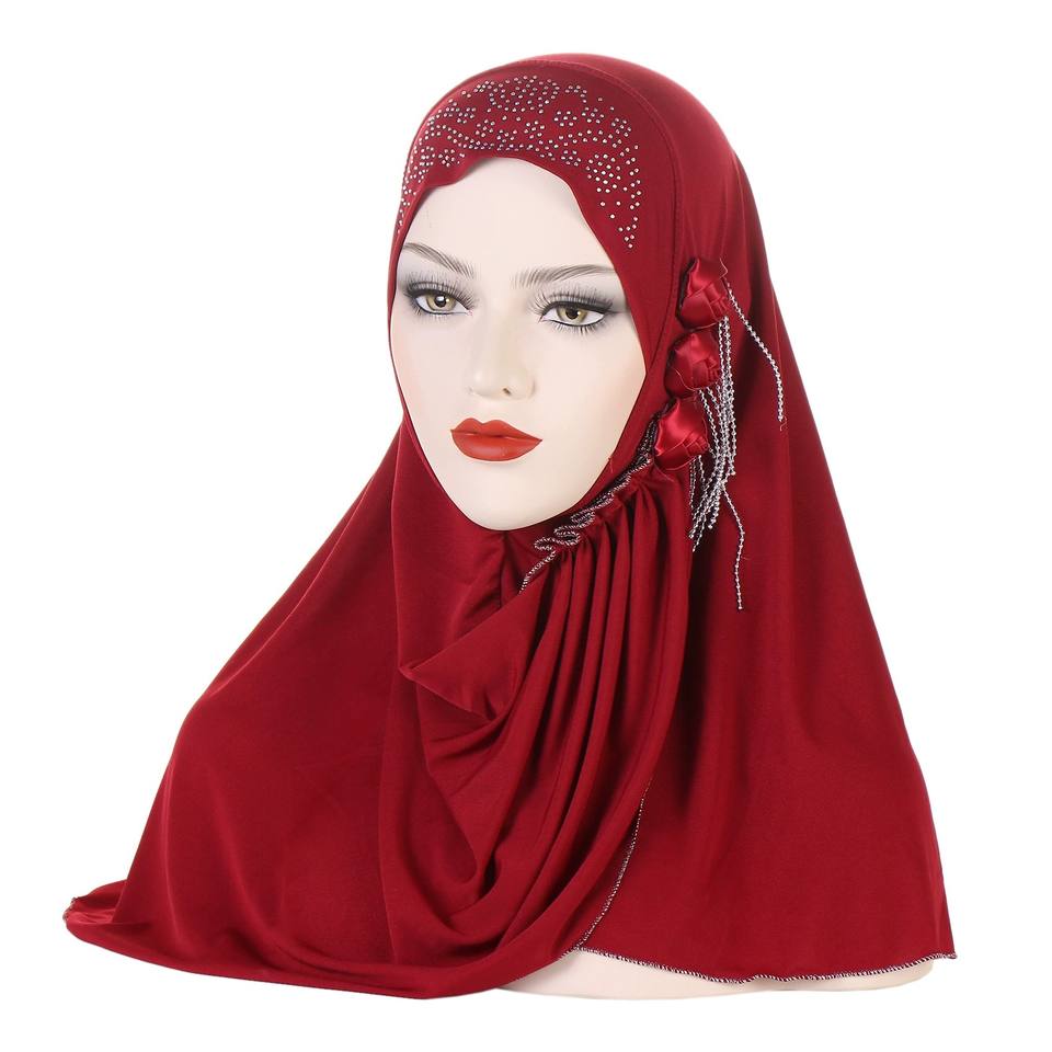 Gorros Hijab Musulmanes Multicolores a la Moda con 3 Flores, Pañuelo para la Cabeza Islámico para Mujer, Hijab Instantáneo