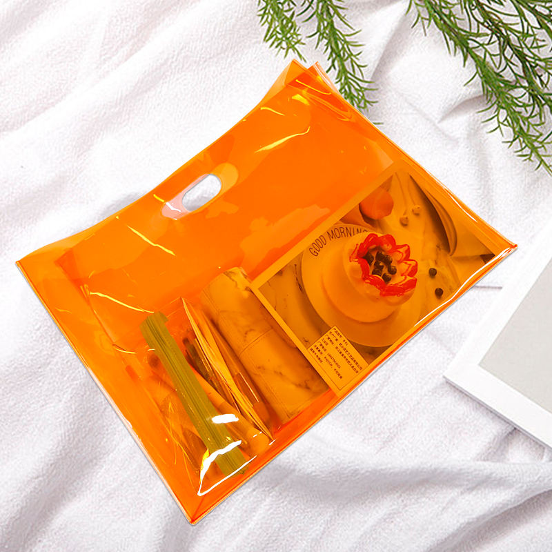 Bolsa de Compras Transparente de PVC Naranja con Asa Troquelada, Portátil, Impermeable, para Playa y Piscina, Almacenamiento de Artículos de Tocador