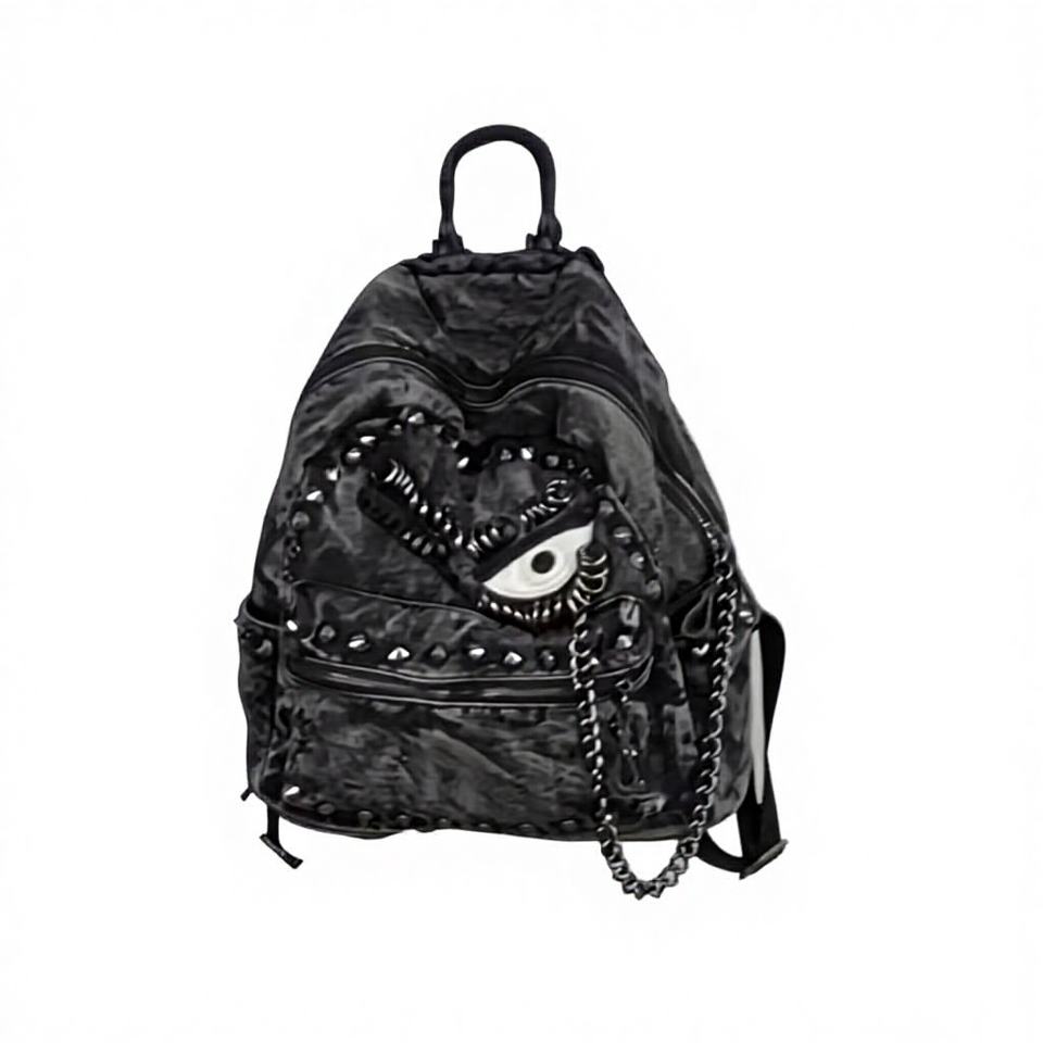 Mochila de Moda Estilo Retro, Lavada, con Remaches de Cadena, Estilo Motociclista, Gran Capacidad, Forro de Nailon, Cierre de Cremallera, para Mujer