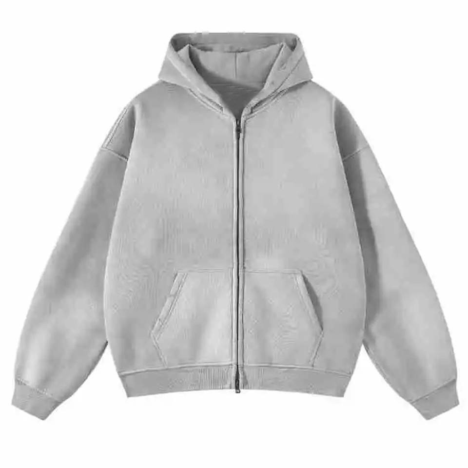 Sudadera con Capucha para Hombre, Moderna, de Textura Lisa, con Estampado Digital, Cierre de Cremallera, Mezcla de Poliéster/Algodón, Diseño Desgastado, con Bolsillos