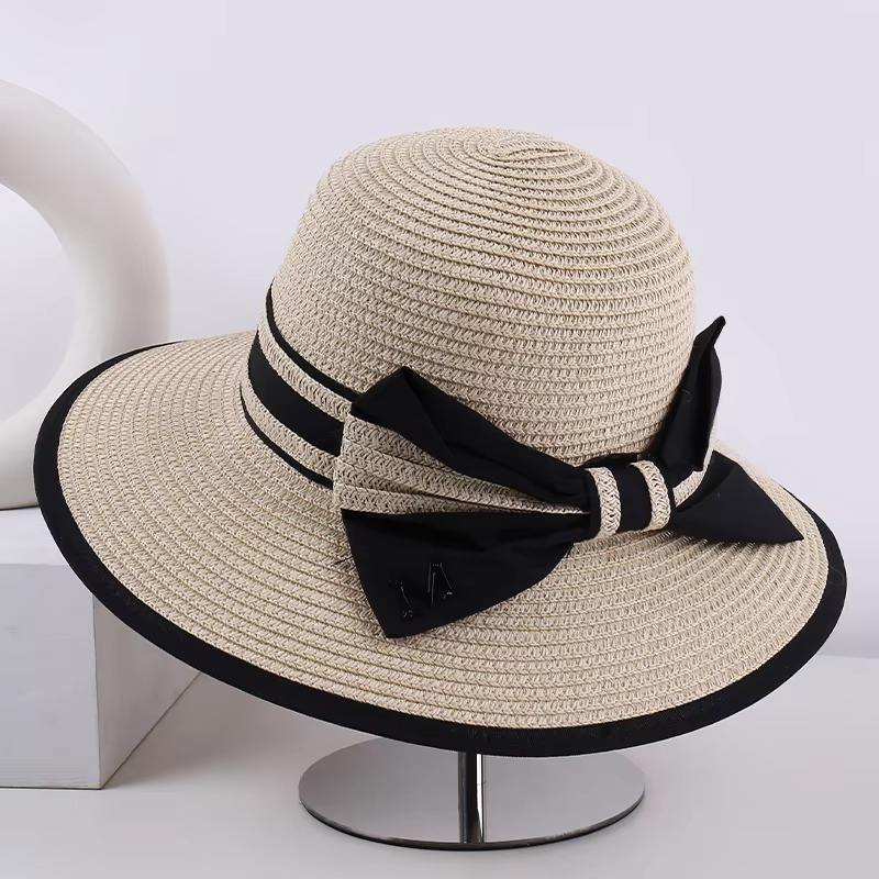 Sombrero de sombrilla de nailon de primavera y verano a la moda con decoración de lazo transpirable cómodo para viajes al aire libre vacaciones en la playa