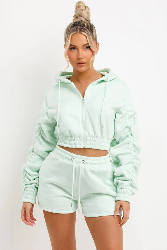 Nombre del producto:Mujeres Crop Hoodies Short Set