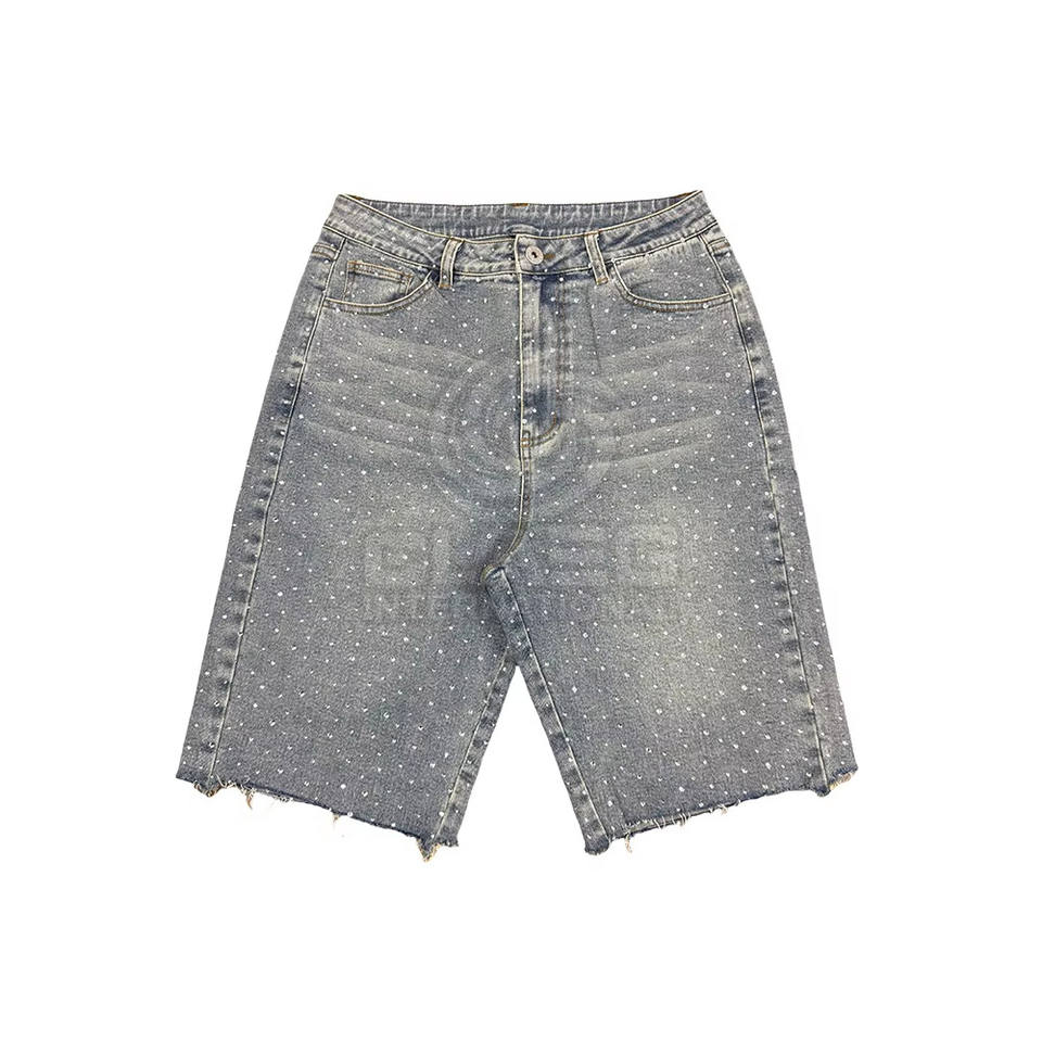 Ropa de verano de moda para hombres Pantalones cortos de mezclilla con diamantes de imitación Nuevo diseño con logotipo personalizado Pantalones cortos de mezclilla para hombres Precio al por mayor
