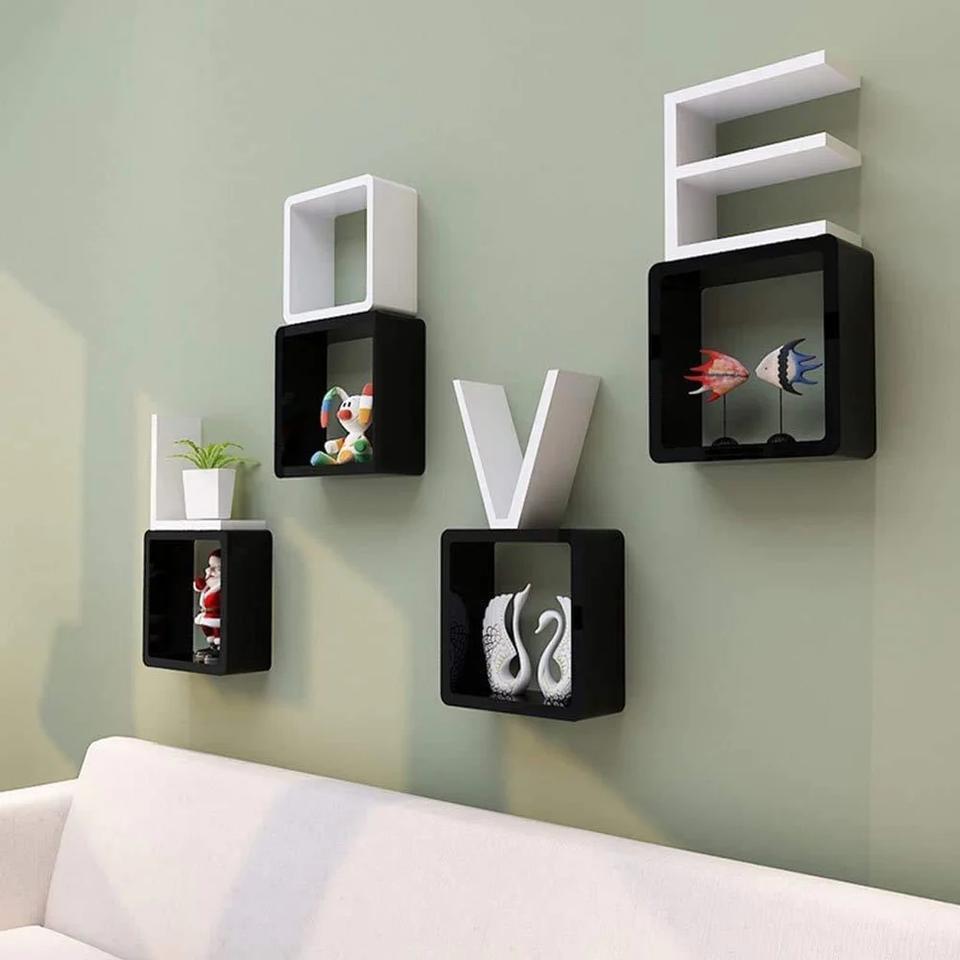 Estante de Madera Multifuncional de Cuatro Niveles con Forma de Cubo Flotante, Estilo Tradicional y Moderno, para Sala de Estar, de Gran Capacidad
