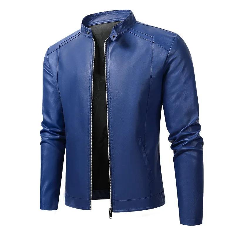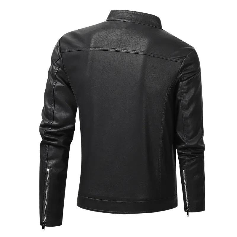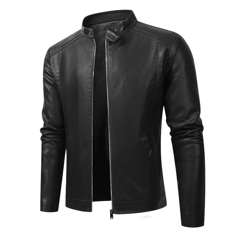 Chaqueta de Cuero Térmica Cálida y Moderna, Chaqueta Casual Ajustada Estilo Motero, Chaqueta de PU con Cuello Alto para una Silueta Elegante, Chaqueta para Hombre