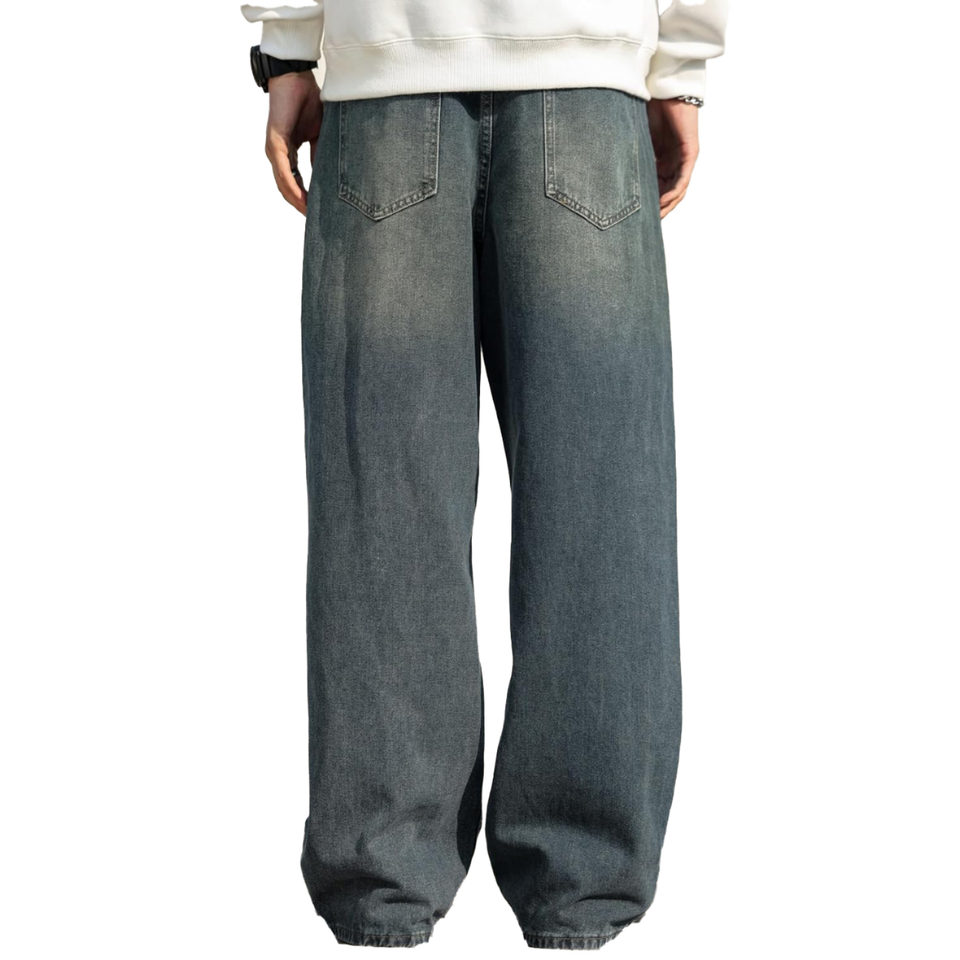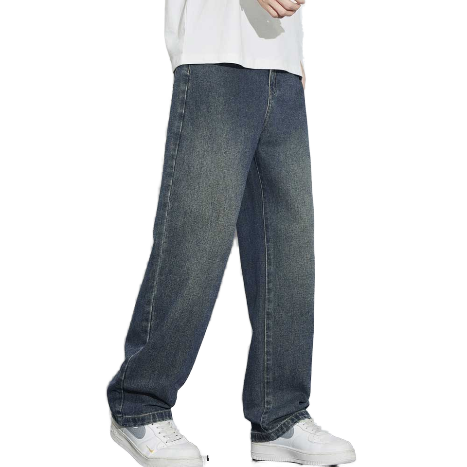 Vaqueros de hombre de mezclilla estilo hip hop, holgados, de pierna ancha, con textura azul retro americana, modernos, sencillos y muy versátiles, ¡novedad!