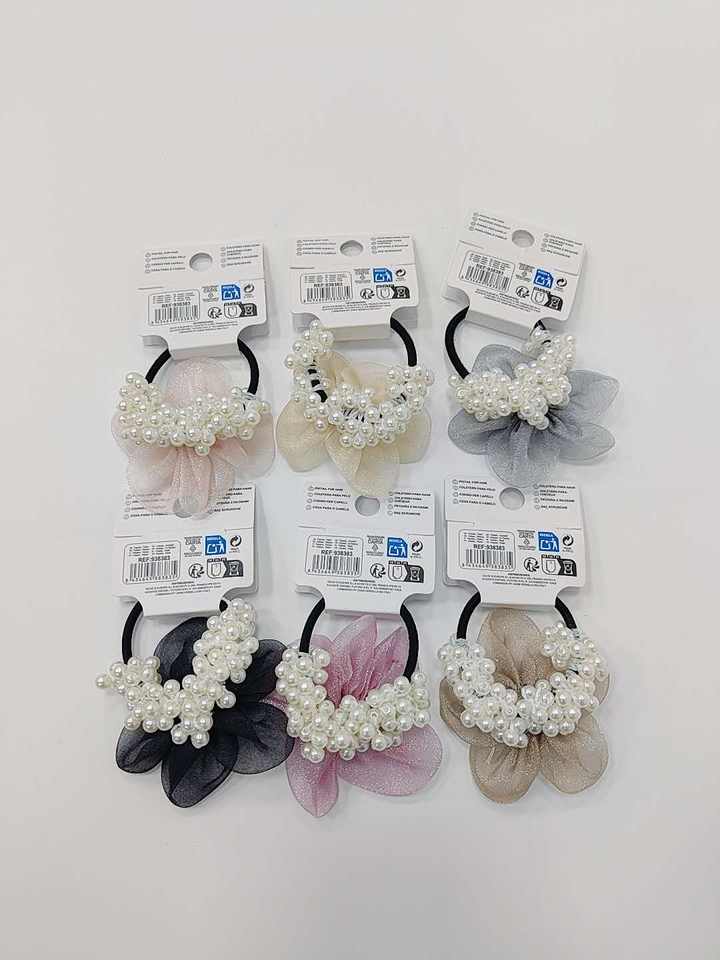 Banda para el cabello de moda para niñas colores surtidos 24/U GM12012D DM con flores elegantes hechas de goma plástica de nailon duradera