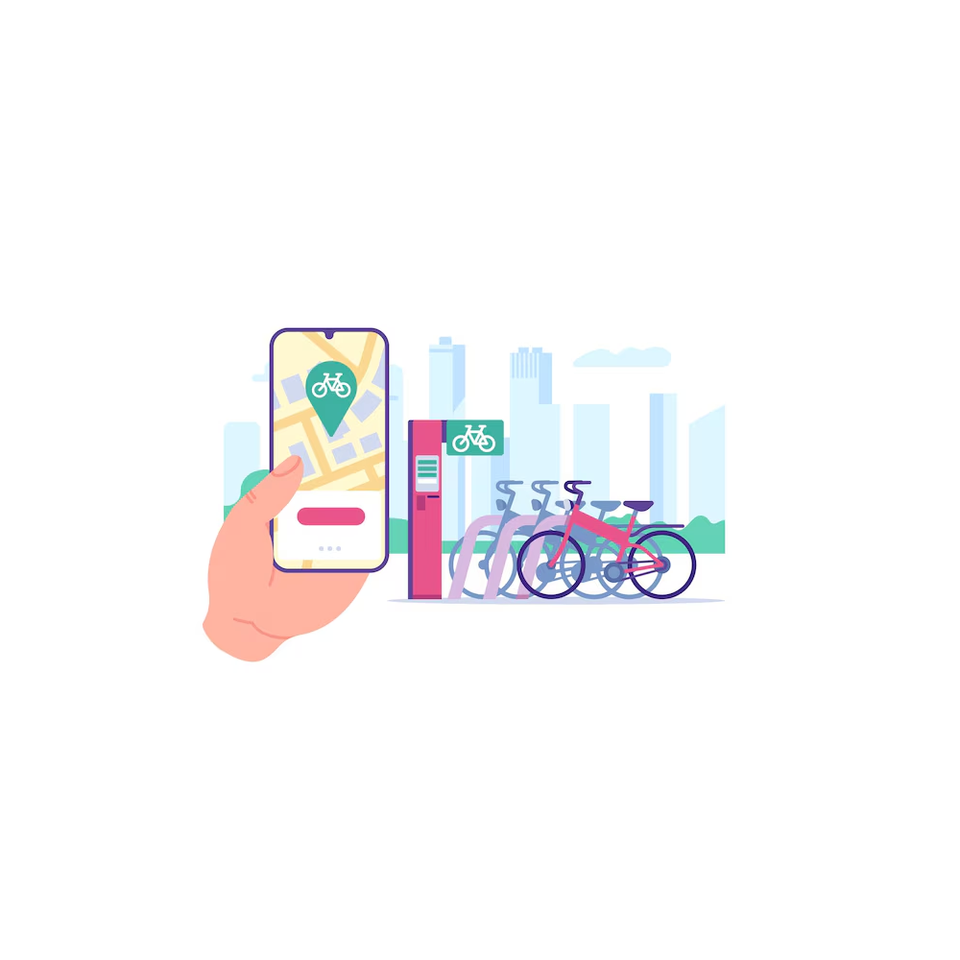 Plataforma rápida de alquiler de bicicletas con seguimiento GPS en Zurich Aplicación inteligente para compartir bicicletas eléctricas para viajes rápidos a la ciudad en Copenhague